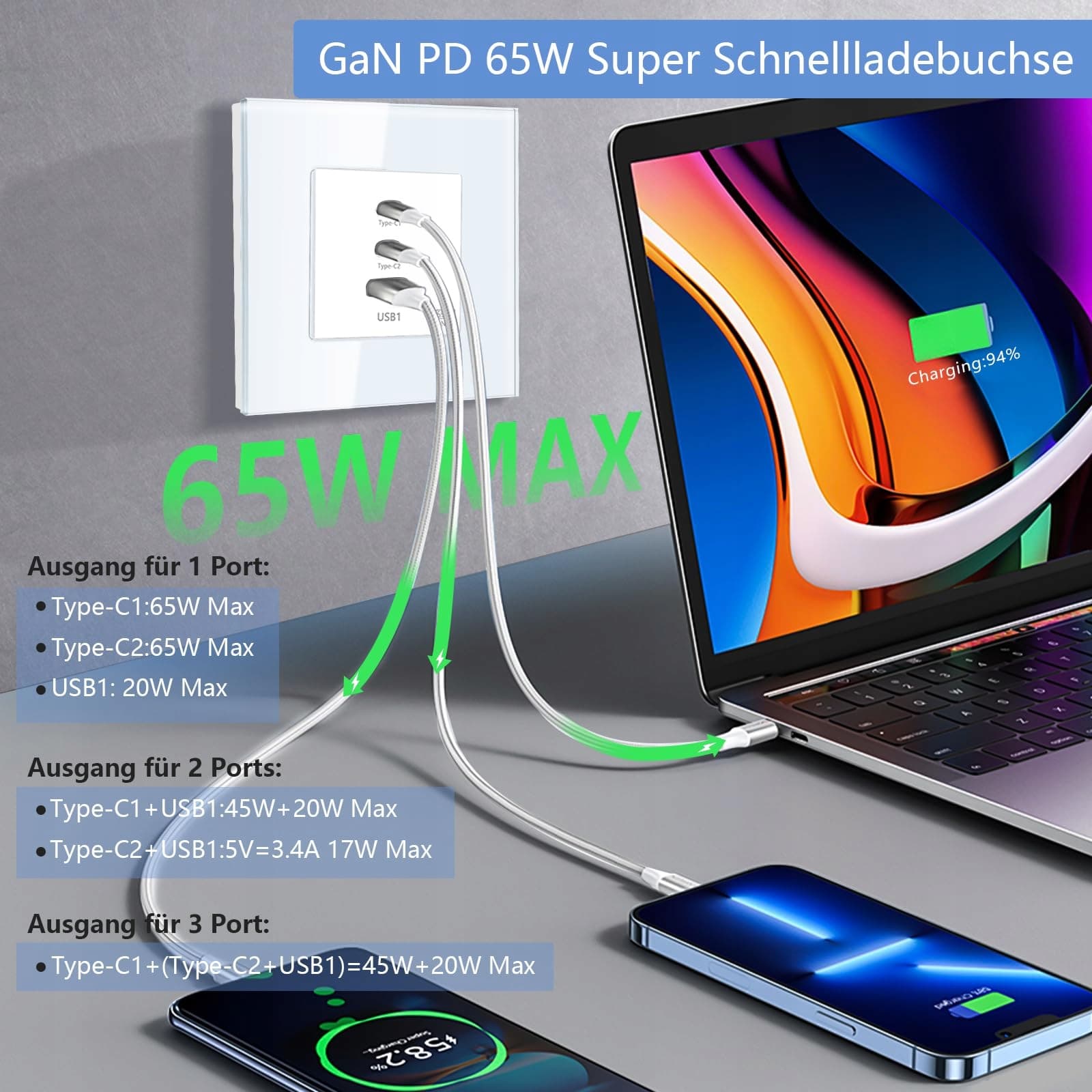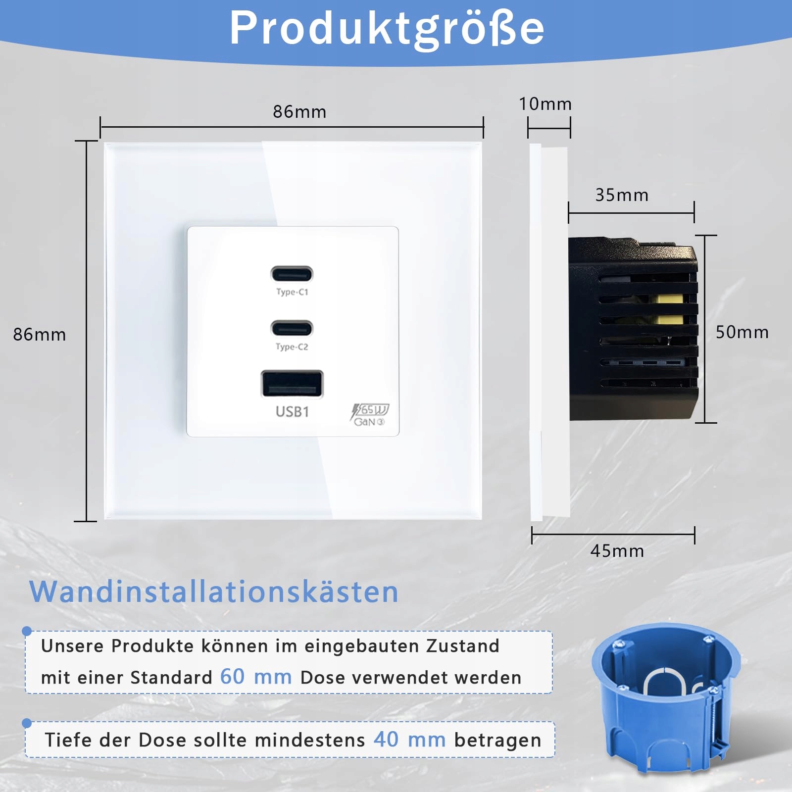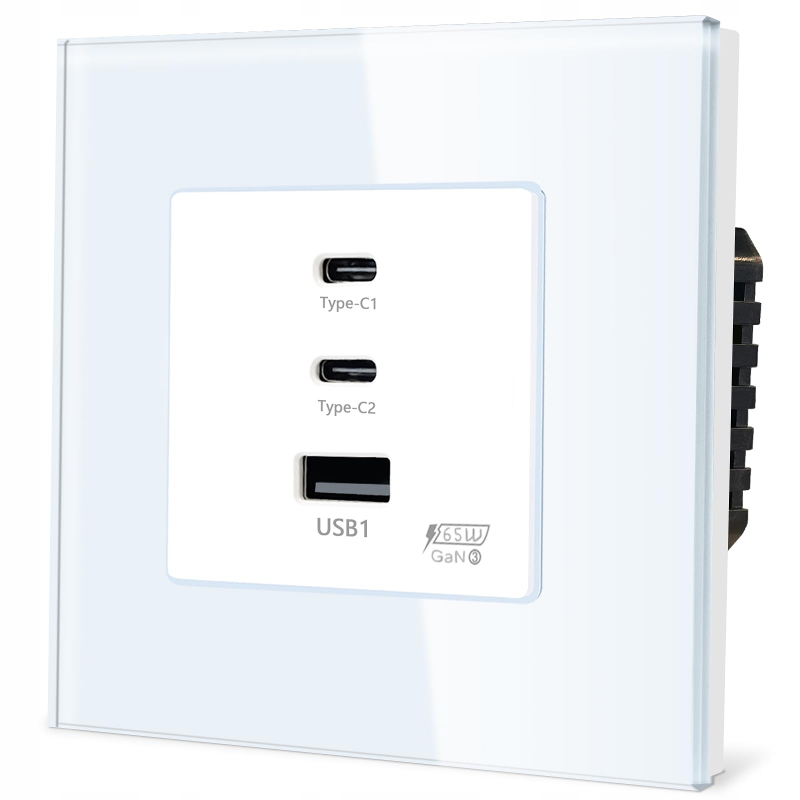 TAWOIA Gniazdko Schuko 65W USB C i USB Szybkie Ładowanie Białe 86x86mm