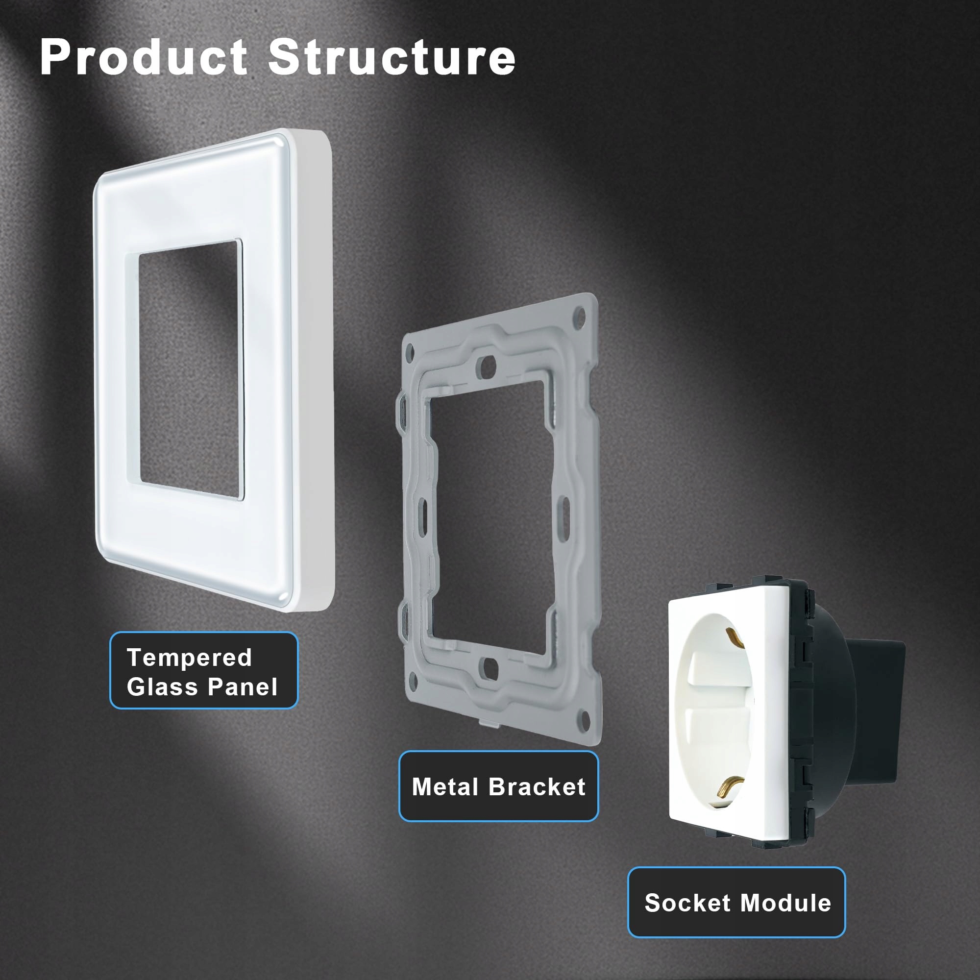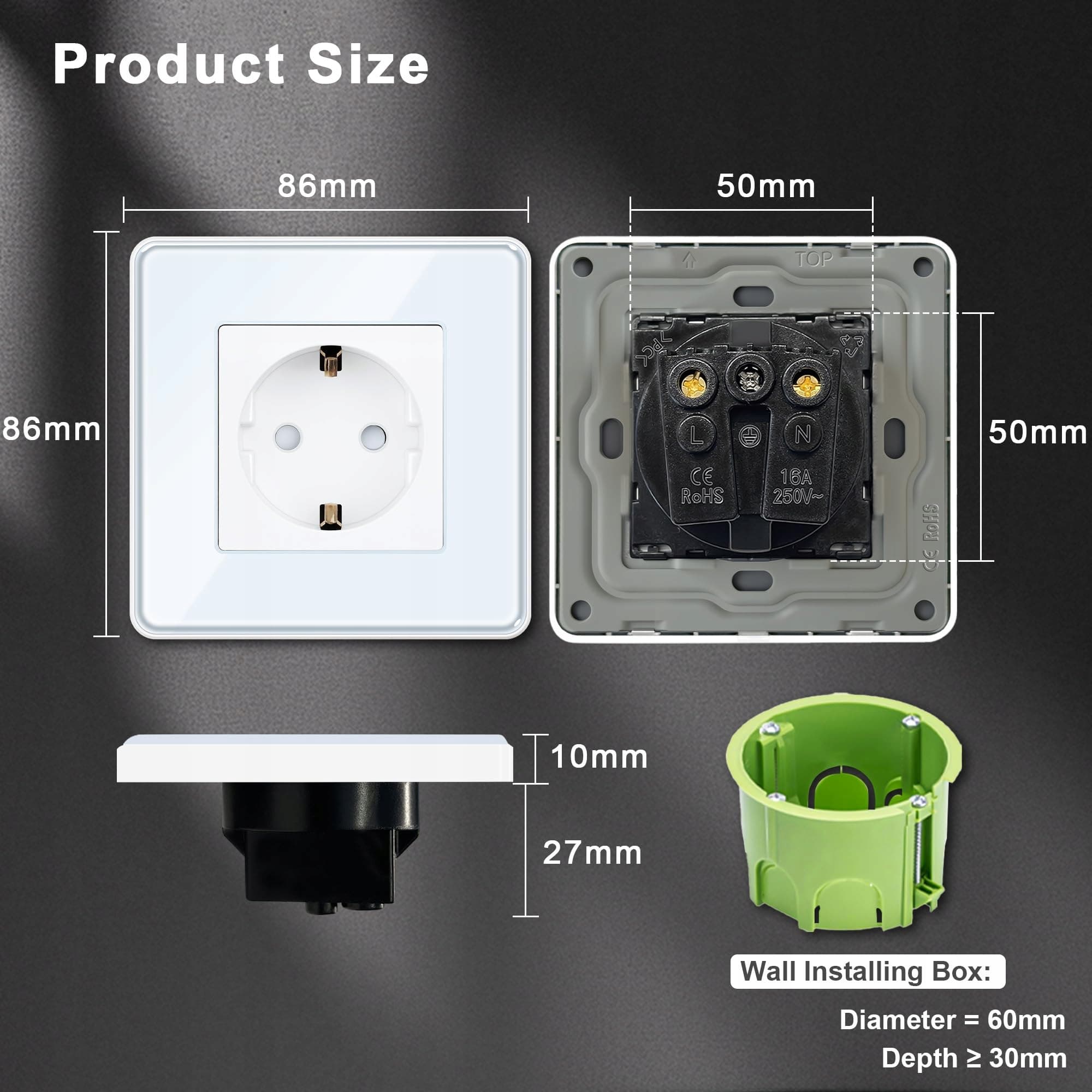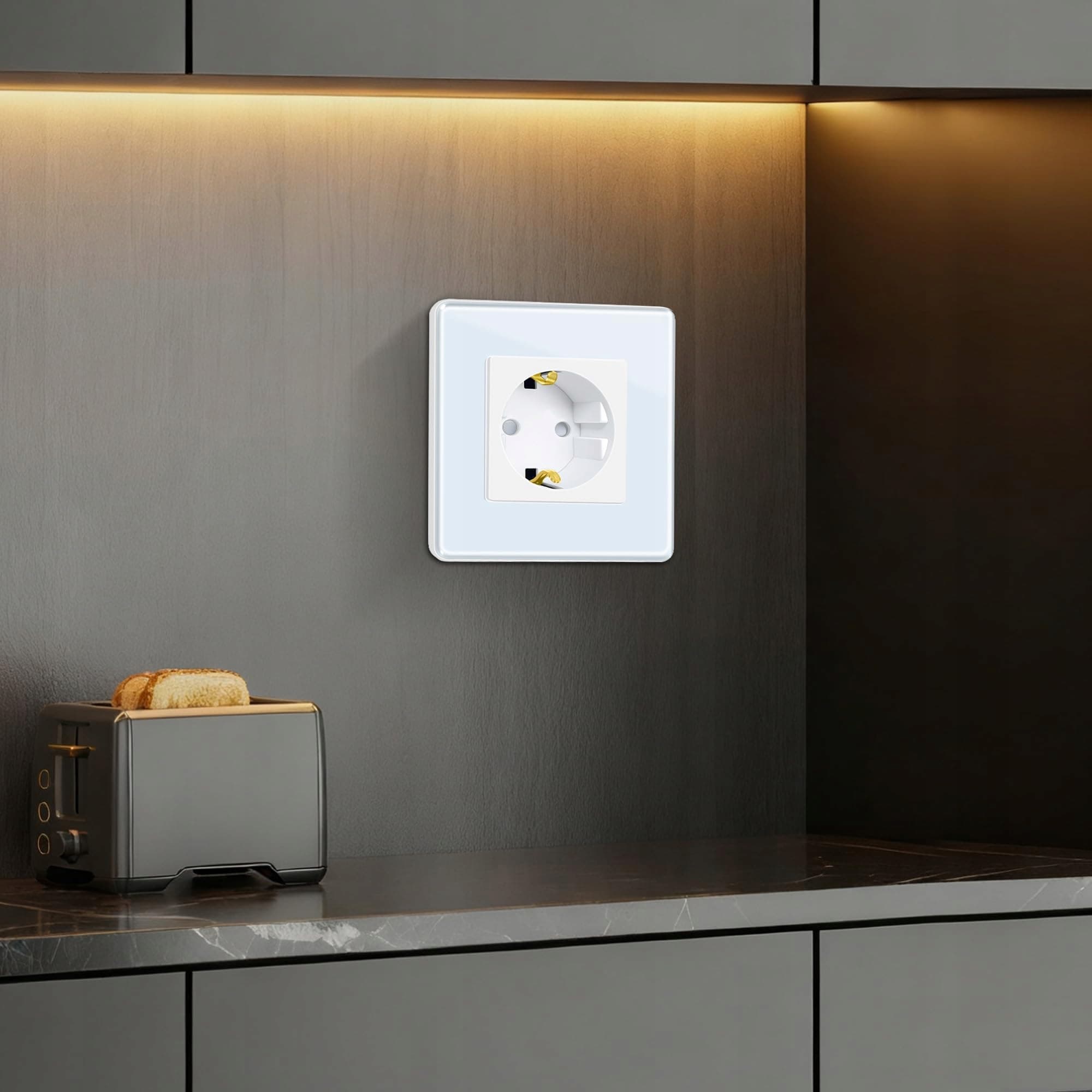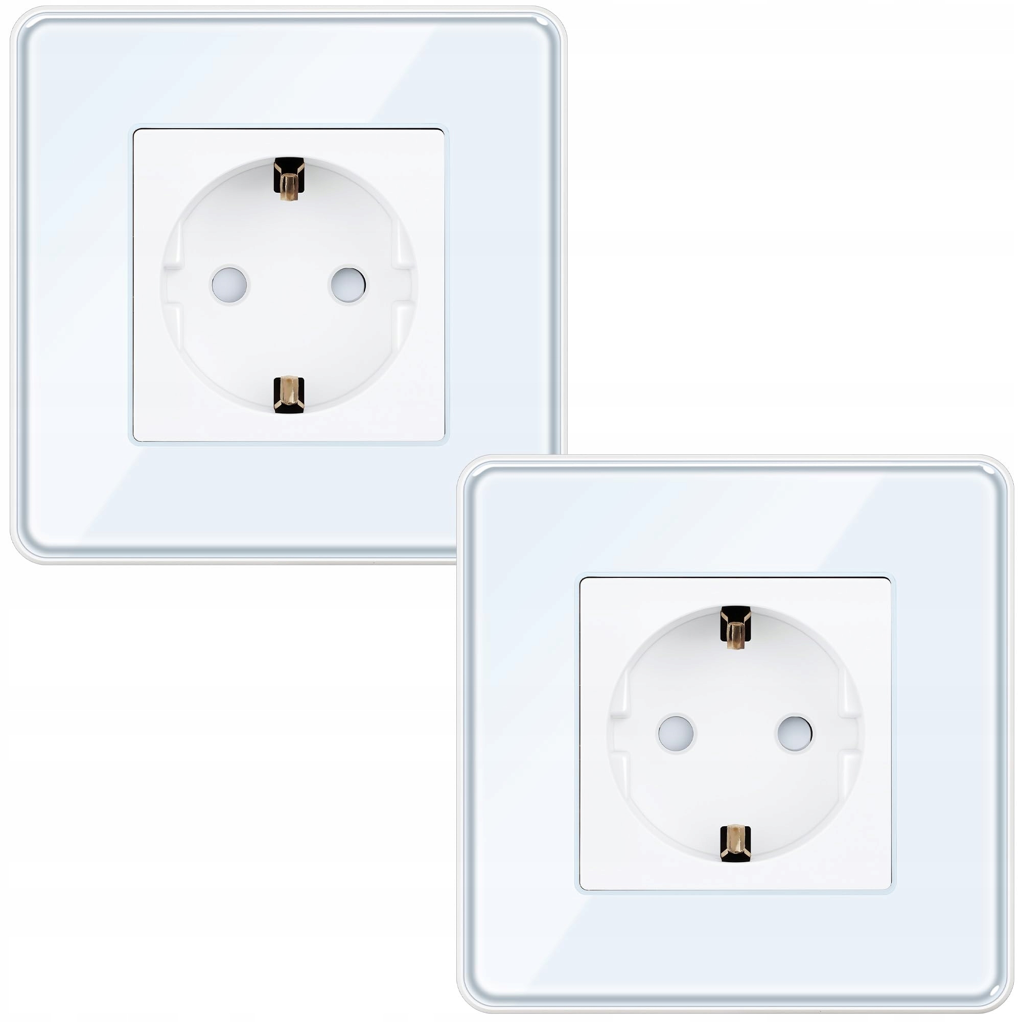 TAWOIA Gniazdko Schuko EU Standard Podtynkowe Szklana Płyta Biała 2 Sztuki | Premium Supply