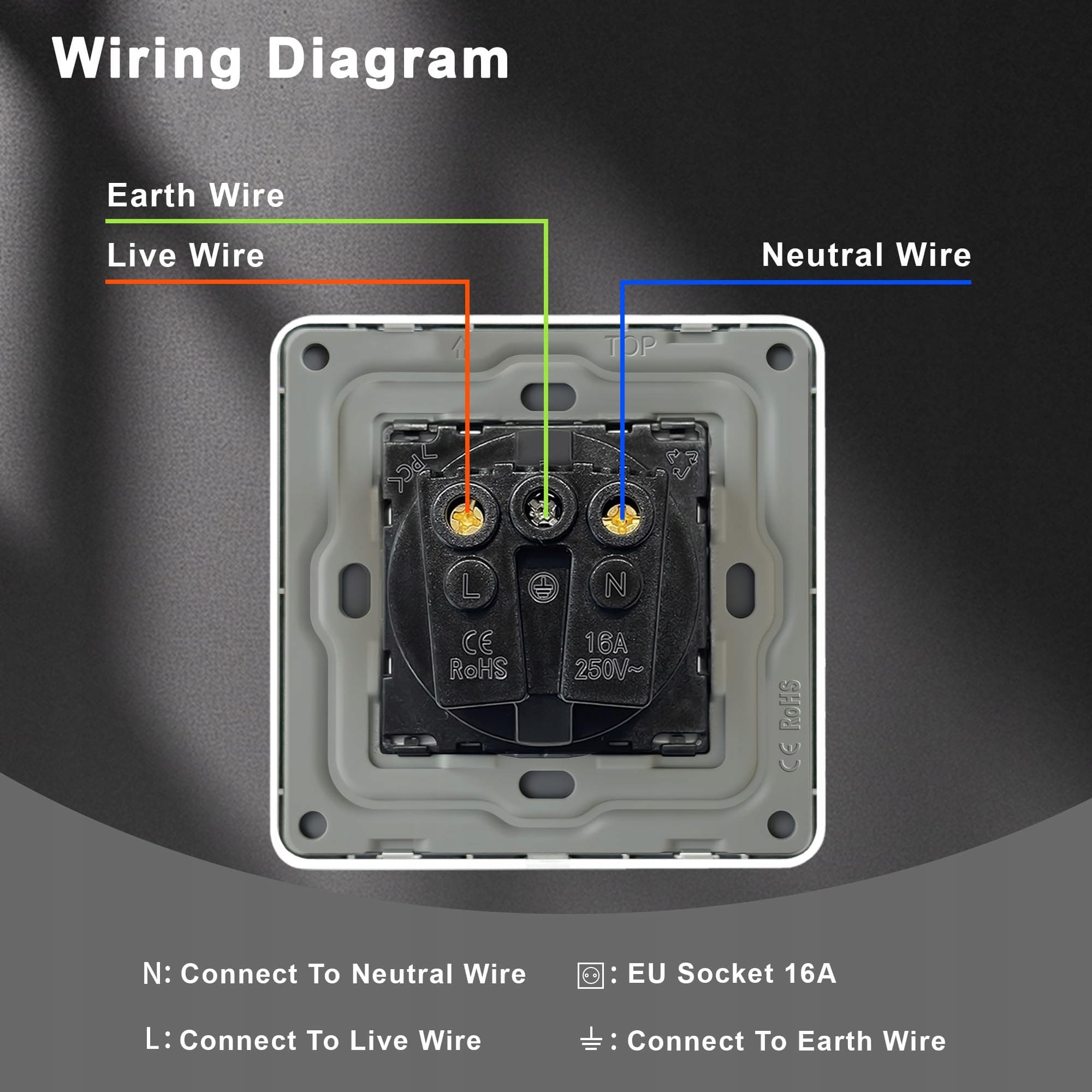 Łatwa instalacja: Podłącz przewód fazowy L, przewód neutralny N oraz przewód uziemiający (zazwyczaj należy podłączyć tylko dwa przewody, przewód fazowy i neutralny)