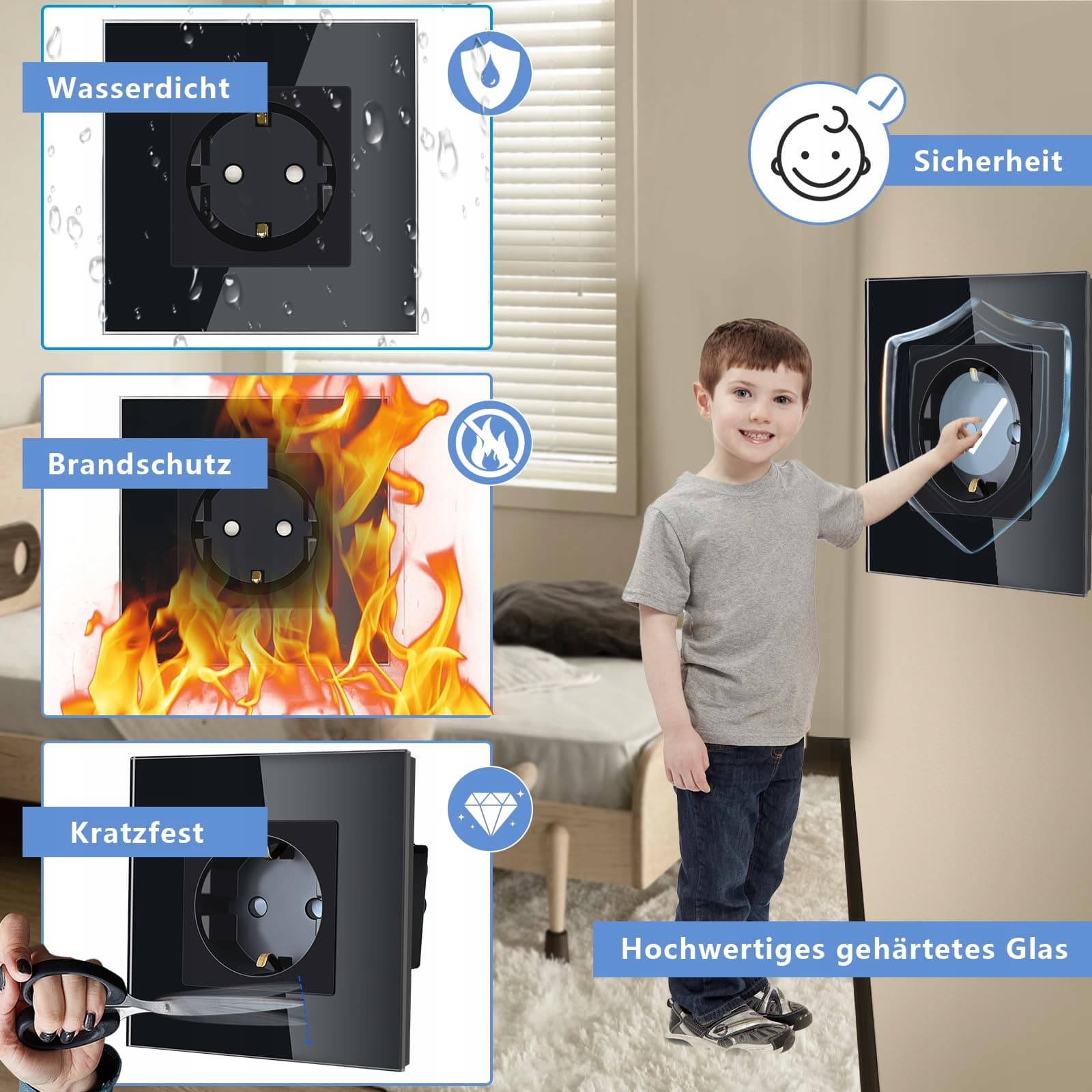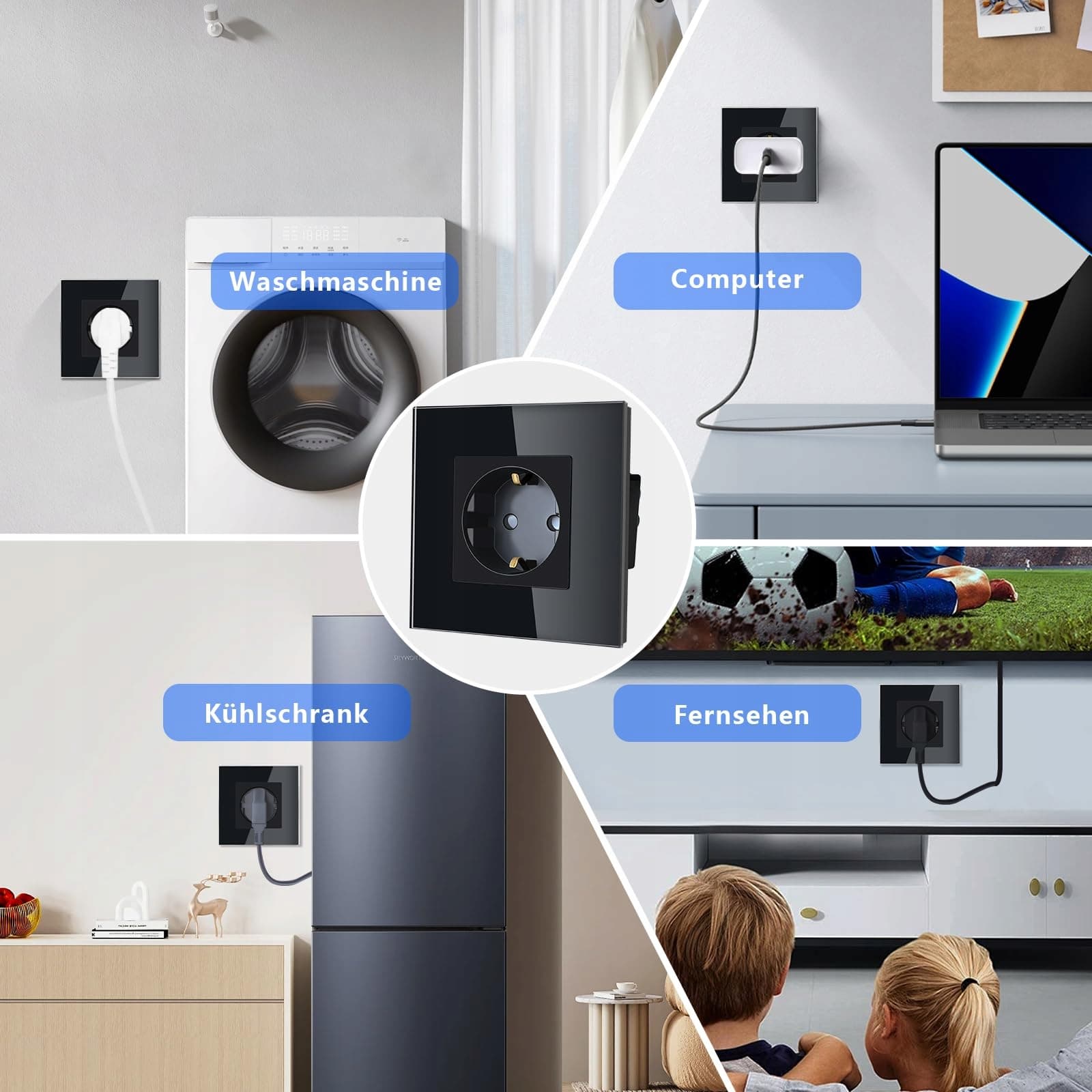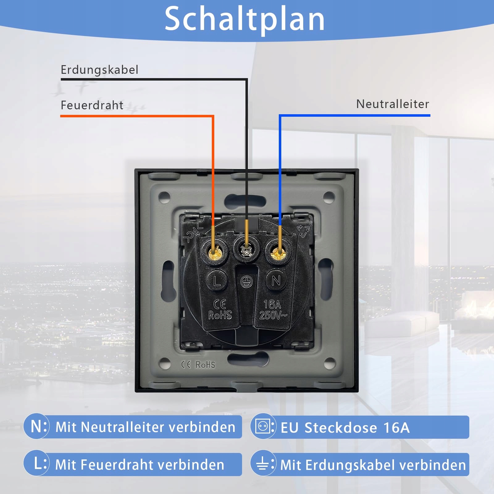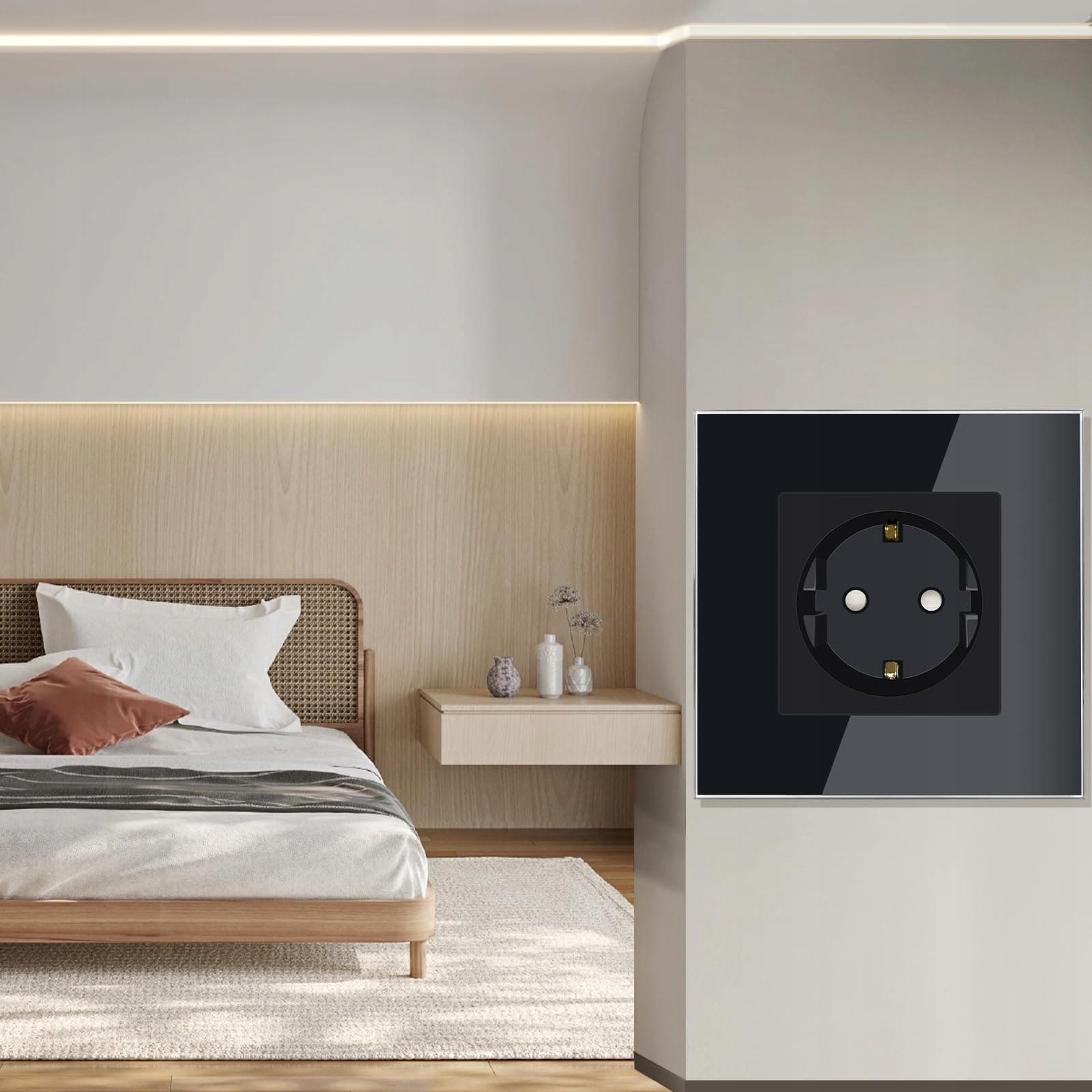 Łatwa instalacja: Zazwyczaj należy osobno podłączyć przewód L, przewód N i przewód uziemiający. Interfejsy PC, TV itp. muszą być instalowane przez fachowców. Głębokość montażu musi wynosić więcej niż 30 mm.