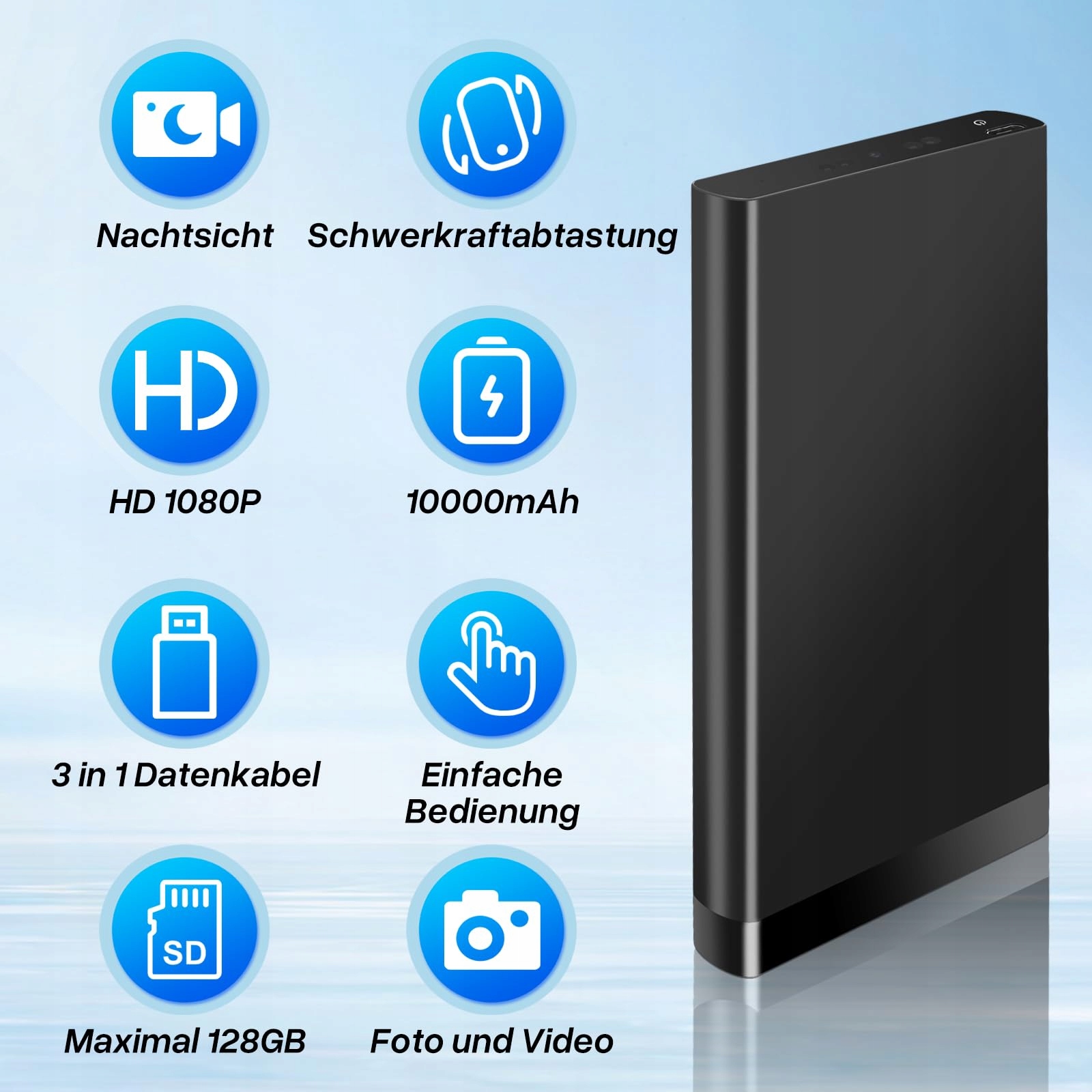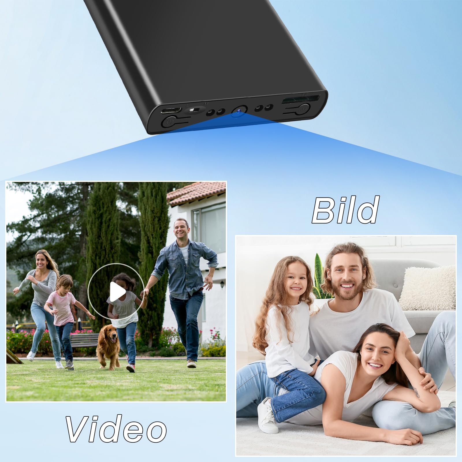 【HD 1080P】Powerbank mała ale silna ma rozdzielczość 1920*1080, co umożliwia nagrywanie żywych, wysokiej rozdzielczości filmów, poprawiając jakość wideo i doświadczenie oglądania.