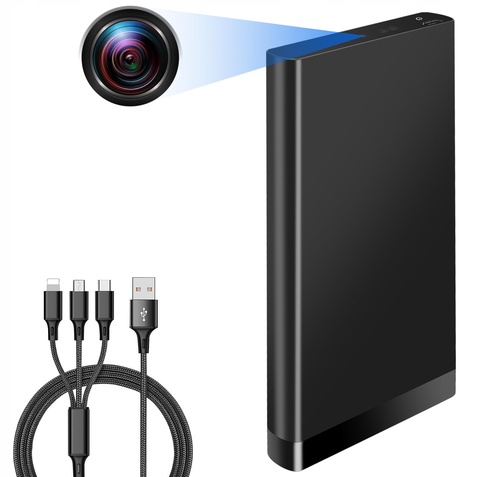 Mała kamera z akumulatorem obsługuje zarówno zdjęcia, jak i nagrywanie wideo oraz jest wyposażona w wbudowany akumulator 10 000 mAh. W połączeniu z dołączonym kablem danych 3 w 1 może być używana jako przenośna powerbank do ładowania różnych urządzeń elektronicznych, zapewniając wygodę i praktyczność.