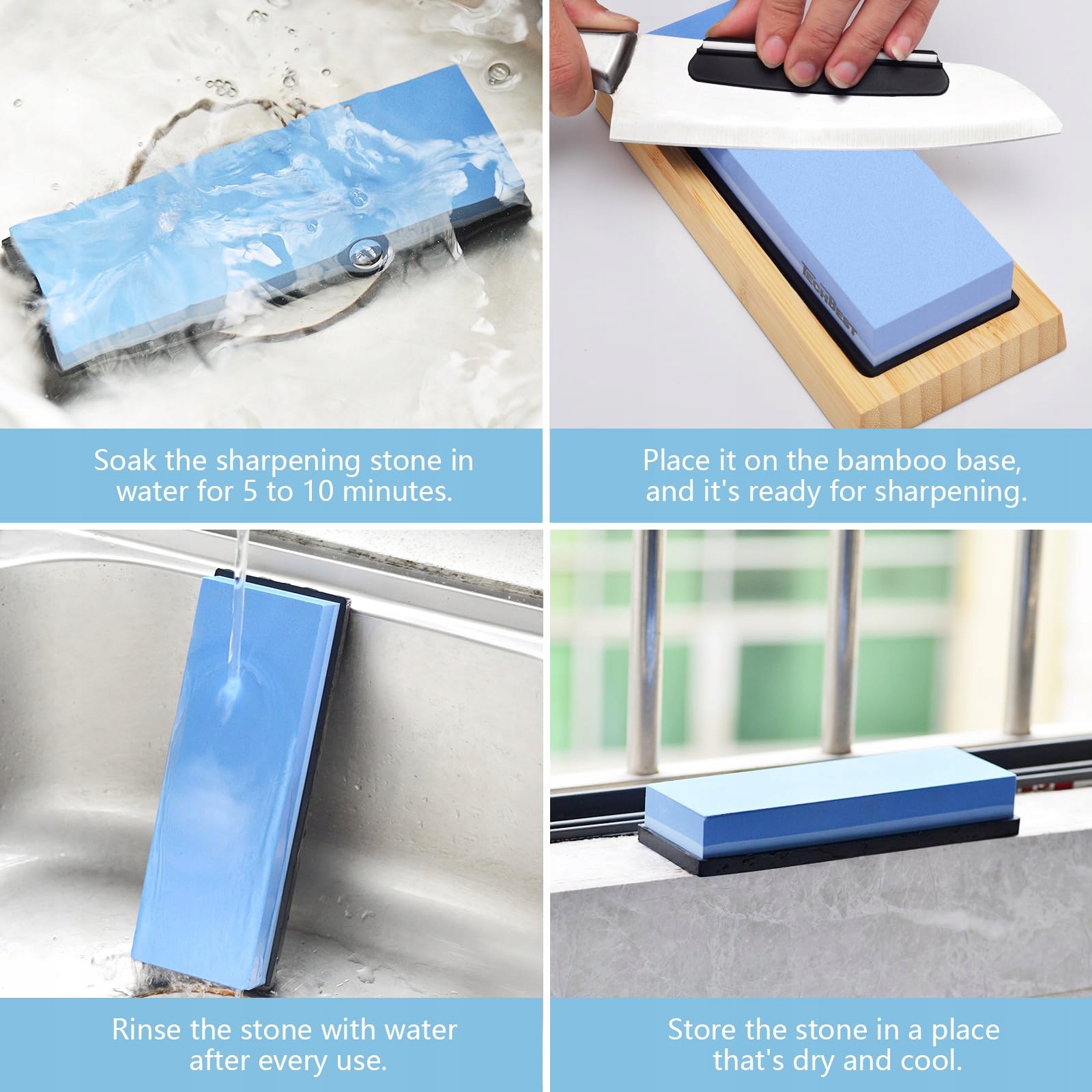 TECHBEST Zestaw Ostrzałek Do Noży Kamień 400/1000 3000/8000 z Podstawą