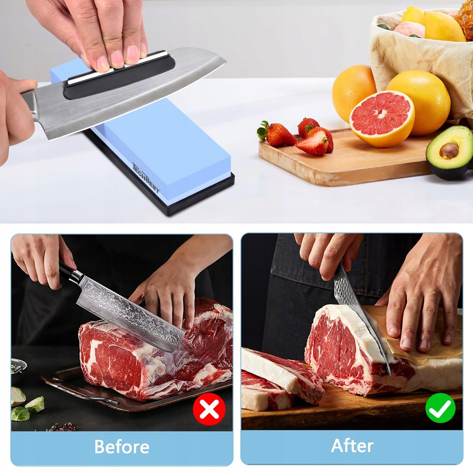 TECHBEST Zestaw Ostrzałek Do Noży Kamień 400/1000 3000/8000 z Podstawą | Premium Supply