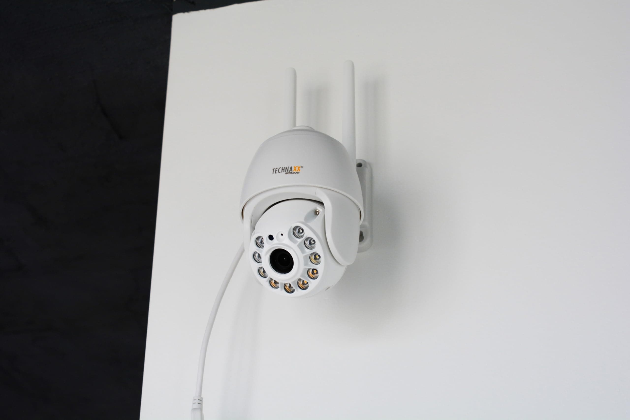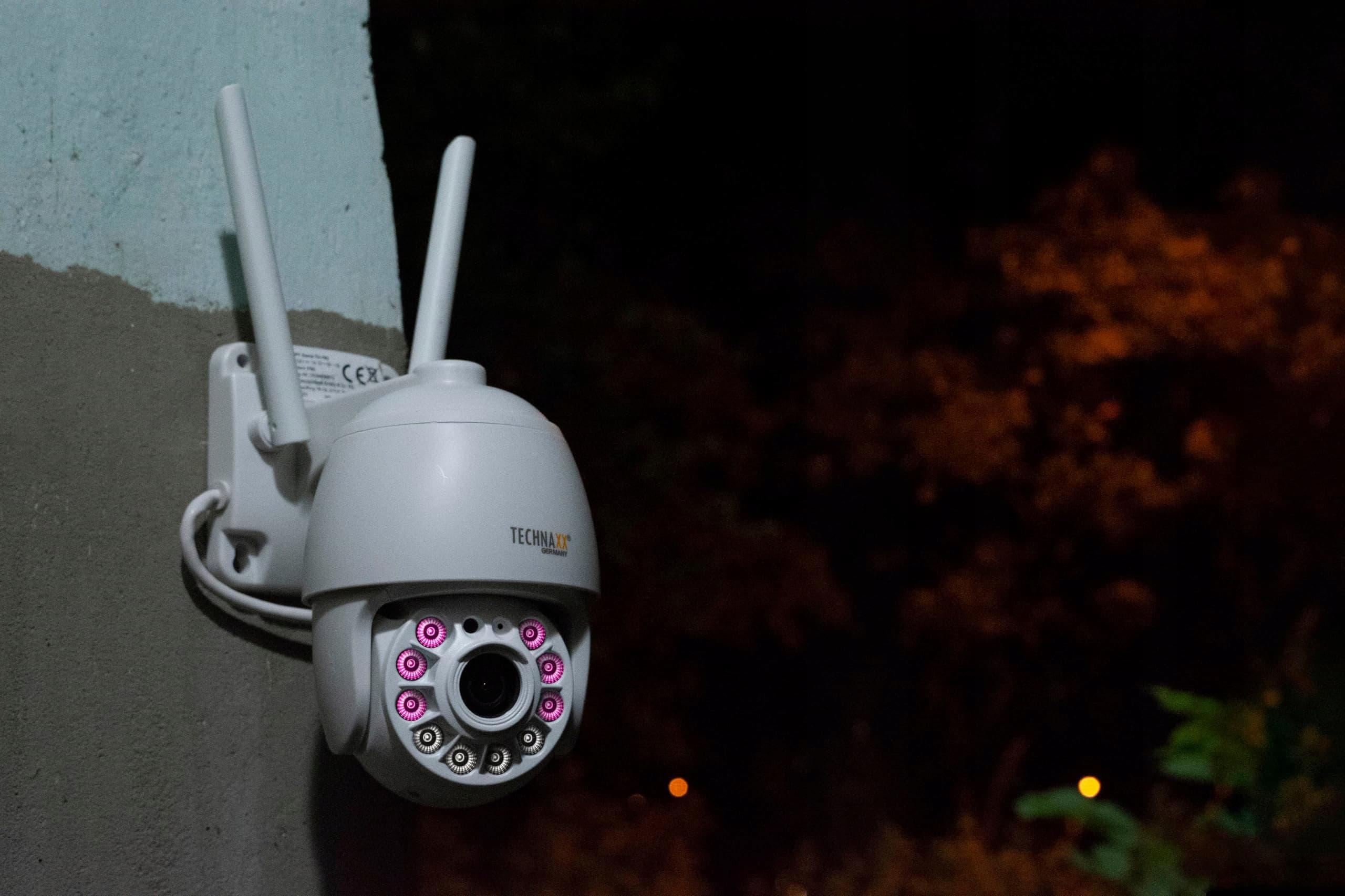 Technaxx FullHD Zewnętrzna Kamera Monitoringu IP66 z czujnikiem ruchu do 15 m, rozdzielczość wideo FullHD, noktowizja IR, kąt obrotu 355° i 90° - 3MP WiFi PT Kamera Kopułkowa TX-192