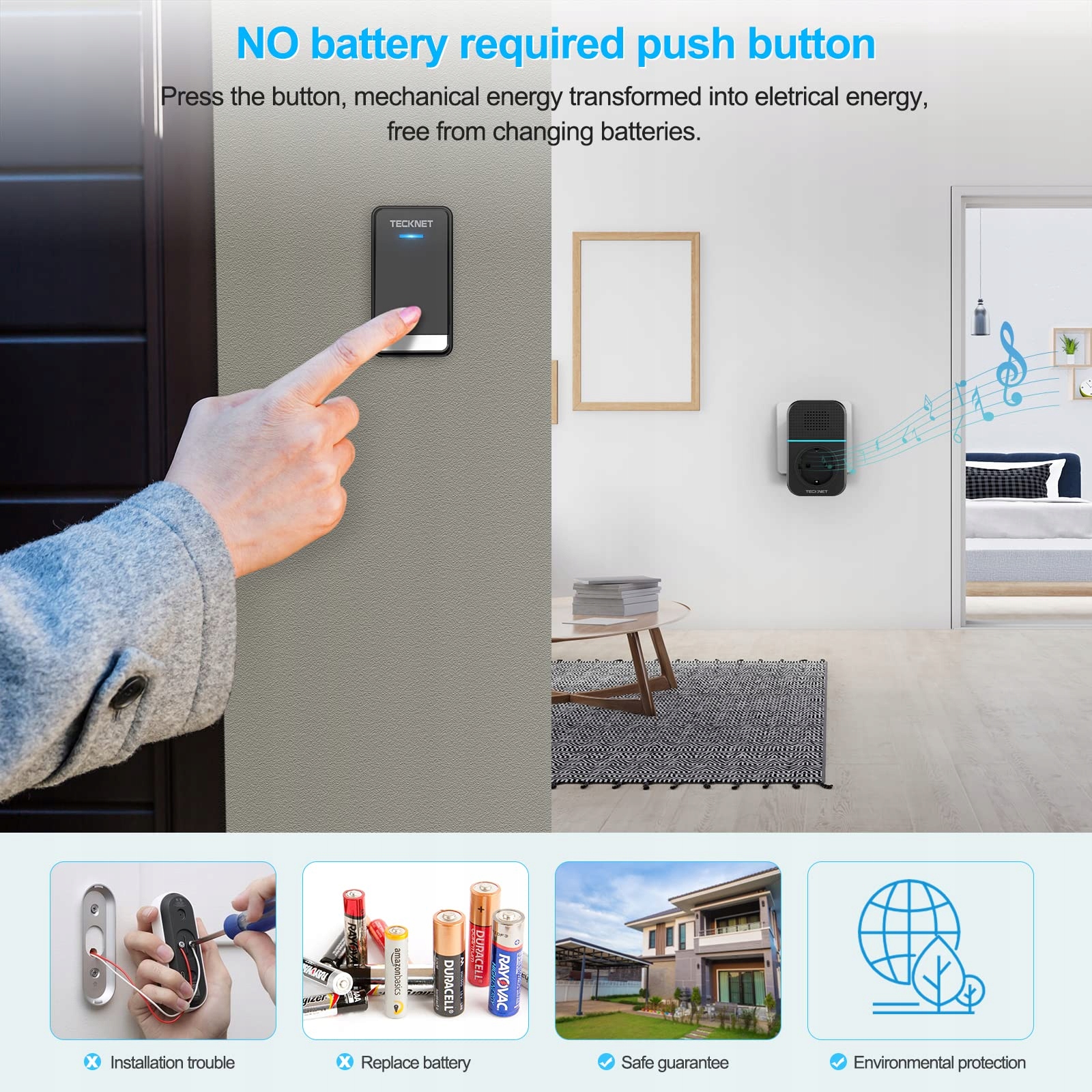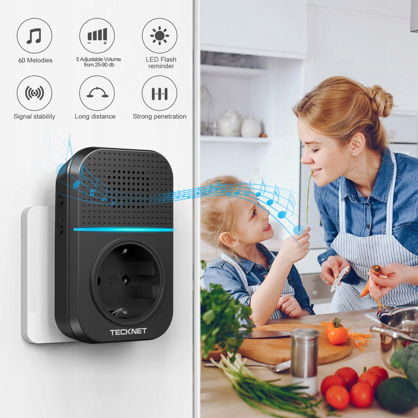 TECKNET Bezprzewodowy Dzwonek Do Drzwi Z Gniazdkiem IP65 400m 60 Melodii | Premium Supply