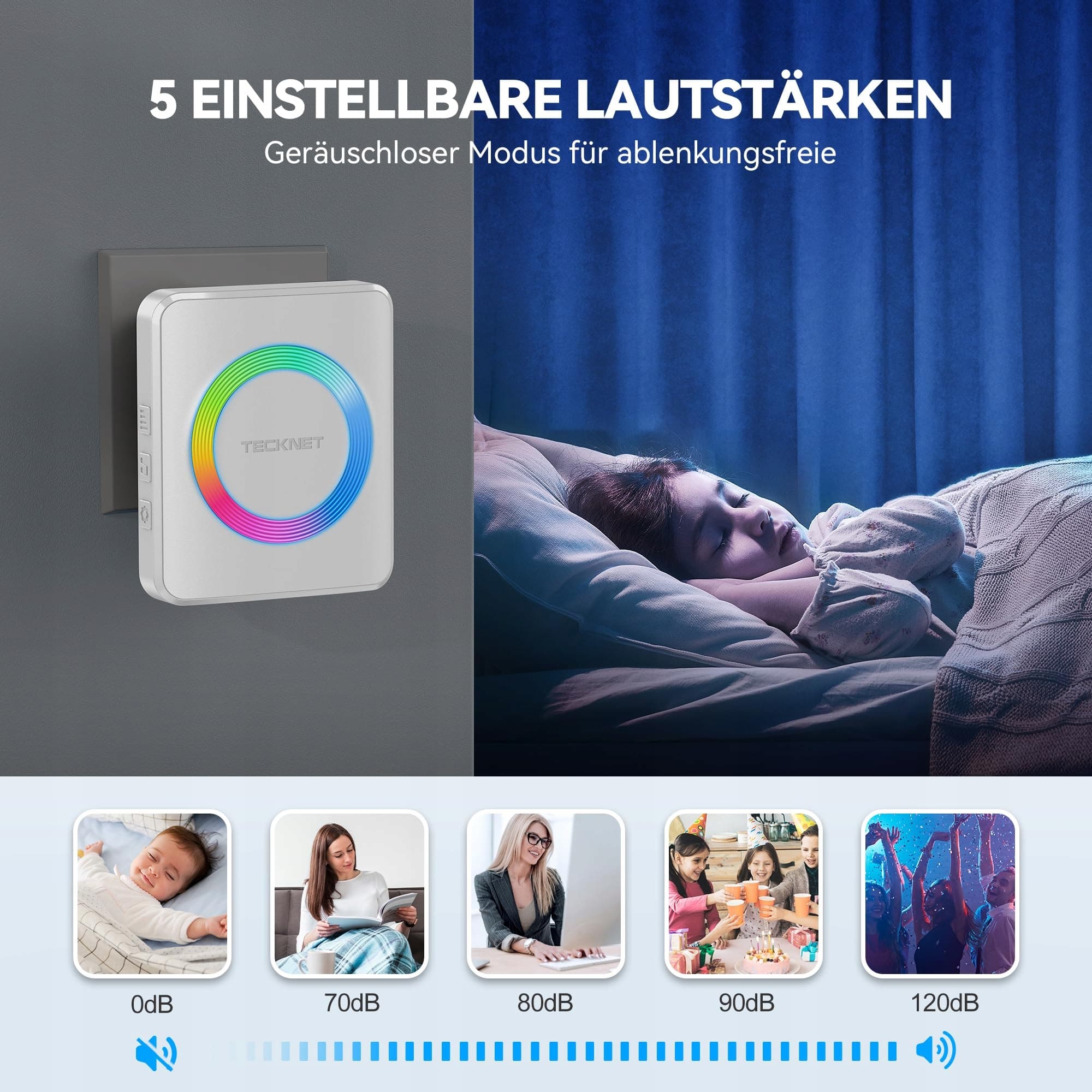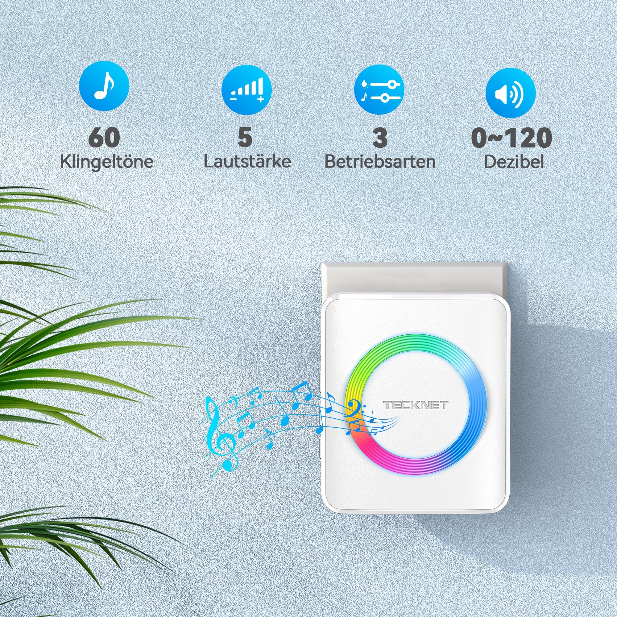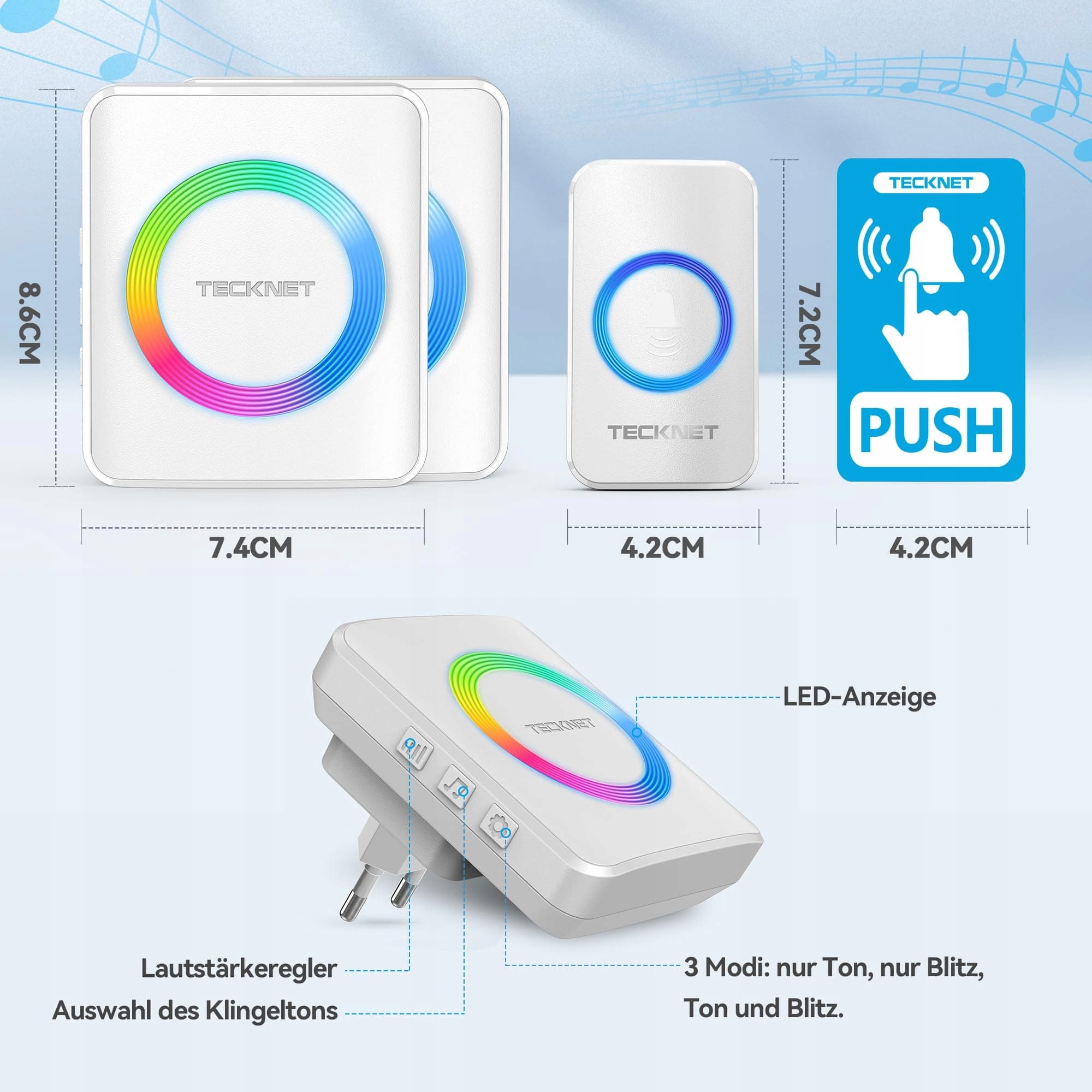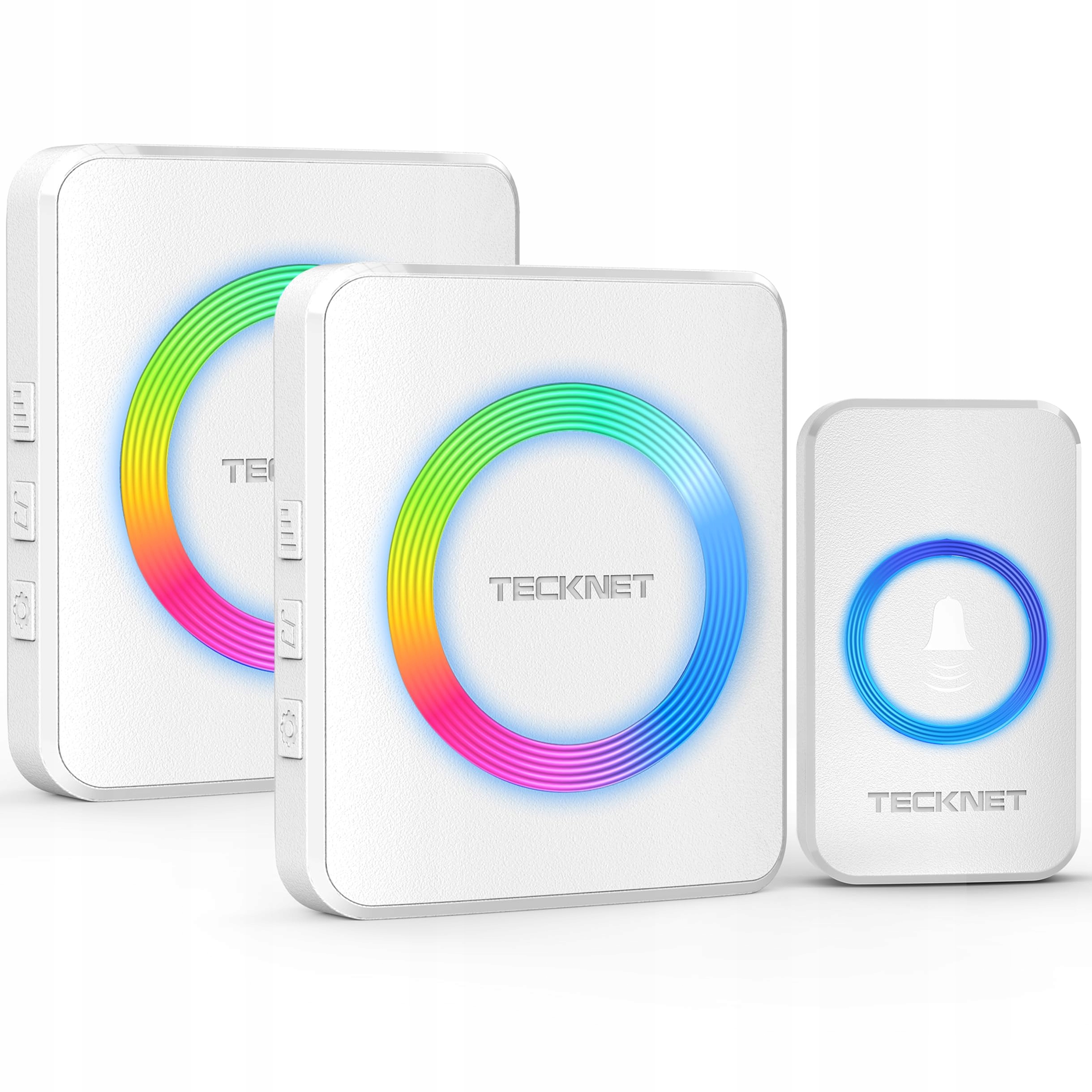 TECKNET Dzwonek bezprzewodowy, Zestaw dzwonków bezprzewodowych o zasięgu 400m, Wodoodporny IP65 dzwonek do drzwi z 2 odbiornikami wtykowymi i 1 nadajnikiem, Dzwonek do drzwi i przycisk dzwonka z lampką LED