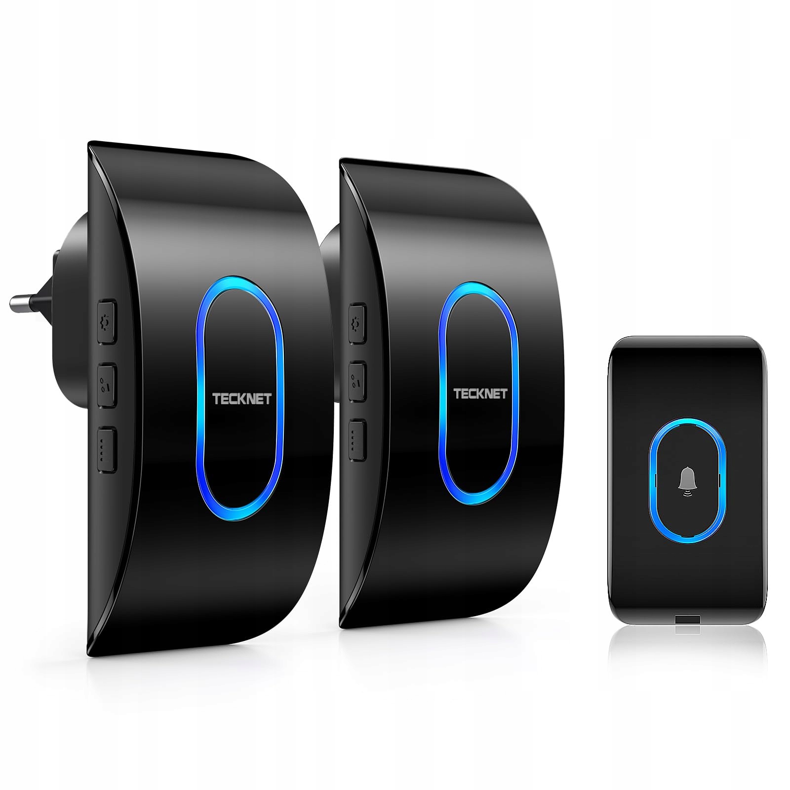 【Podwójny odbiornik】Bezprzewodowy dzwonek 2 odbiorniki oferują stabilniejsze sygnały i są łatwiejsze w użyciu, dzięki czemu możesz wyraźniej słyszeć dzwonek na każdym piętrze. TECKNET Bezprzewodowy dzwonek przychodzi z 1 wodoodpornym nadajnikiem (bateria w zestawie) i 2 odbiornikami do wtyczki.