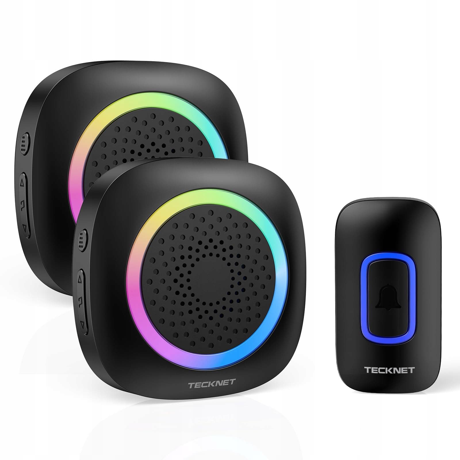 TECKNET Dzwonek bezprzewodowy, Dzwonek zewnętrzny wodoodporny 2 odbiorniki z RGB światłem, 60 melodii, zestaw dzwonka bezprzewodowego IP66, 400m bezprzewodowy dzwonek zasilany bateriami z żywotnością 4,5 roku