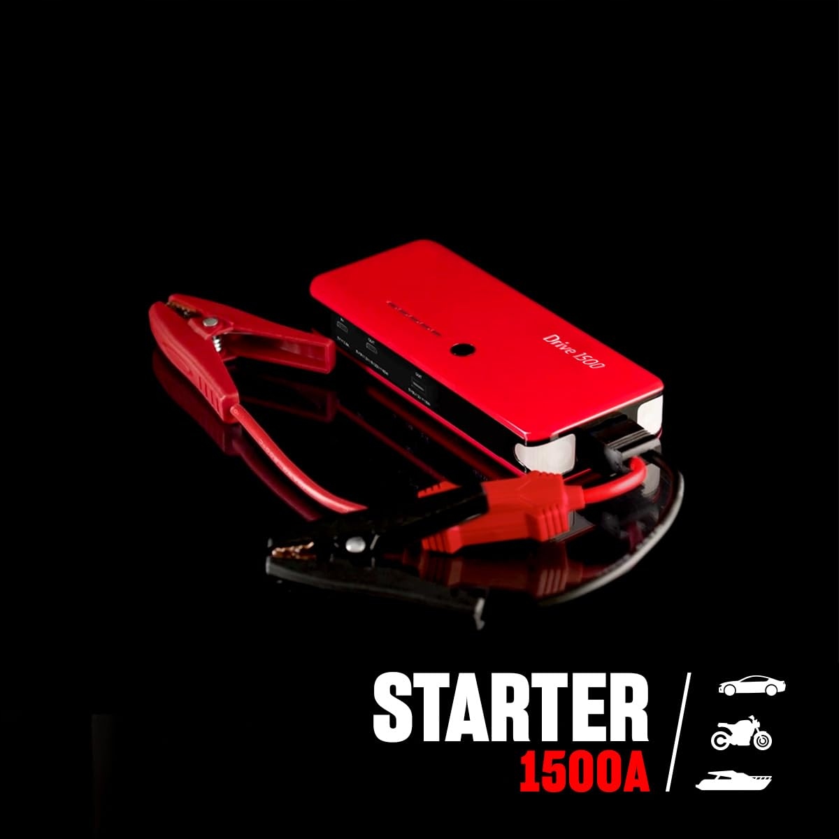Ultrakompaktowy przenośny rozrusznik awaryjny 12 V w wersji wielofunkcyjnej, np. do motocykli, samochodów, kamperów, silników łodzi itp. Wyposażony w wysokowydajne akumulatory 1500A.