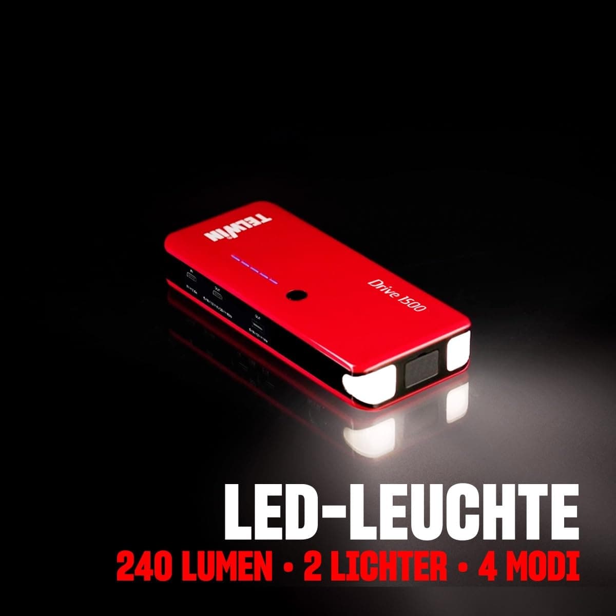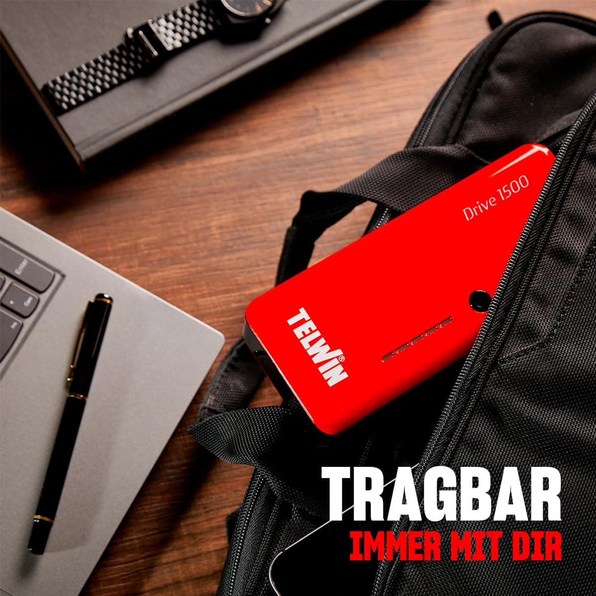Telwin Drive 1500 12V 1500A rozruchowa powerbanka, booster akumulatora samochodowego, rozrusznik awaryjny do samochodów, motocykli i pojazdów, przenośna ładowarka USB, kable rozruchowe, kable do rozruchu, kompaktowa