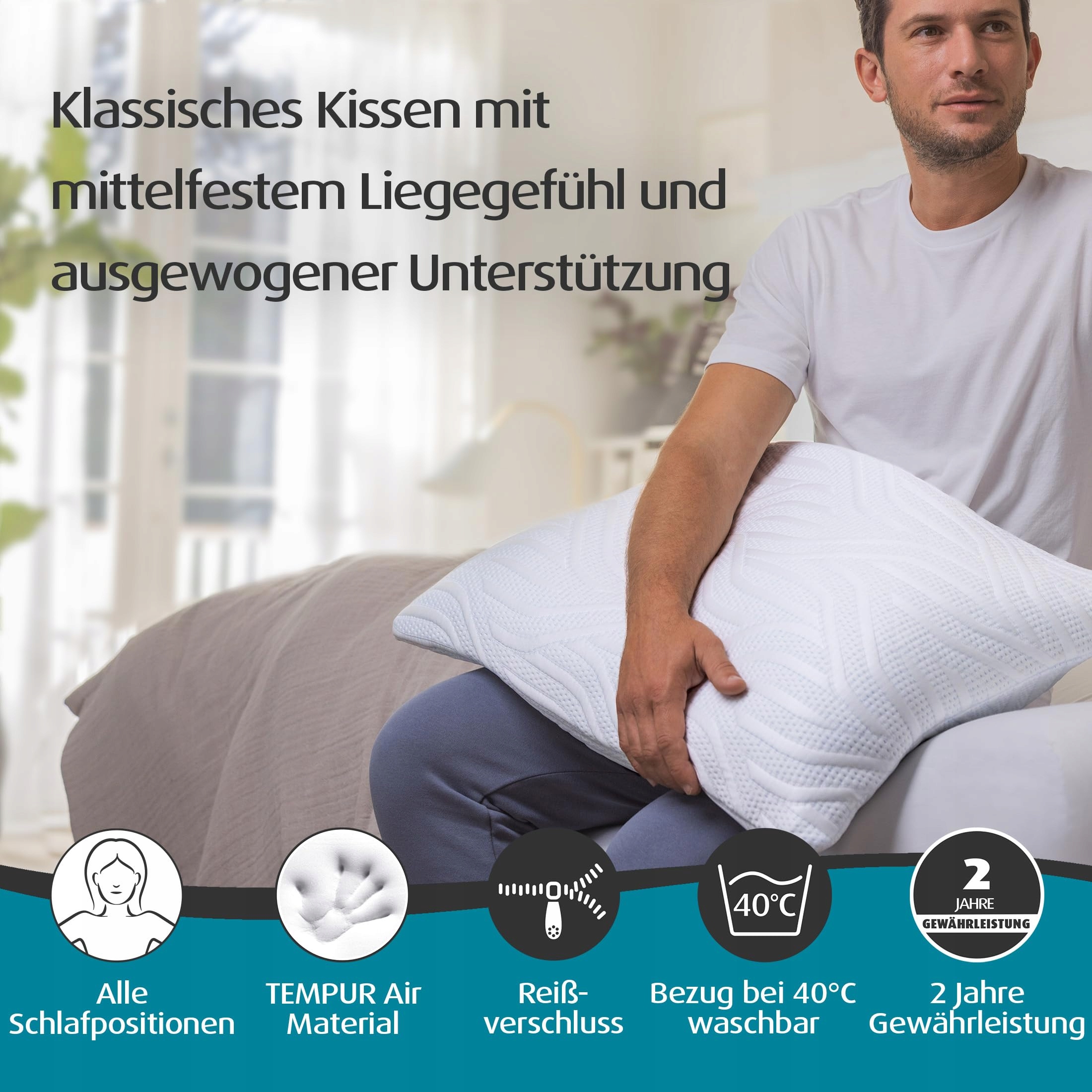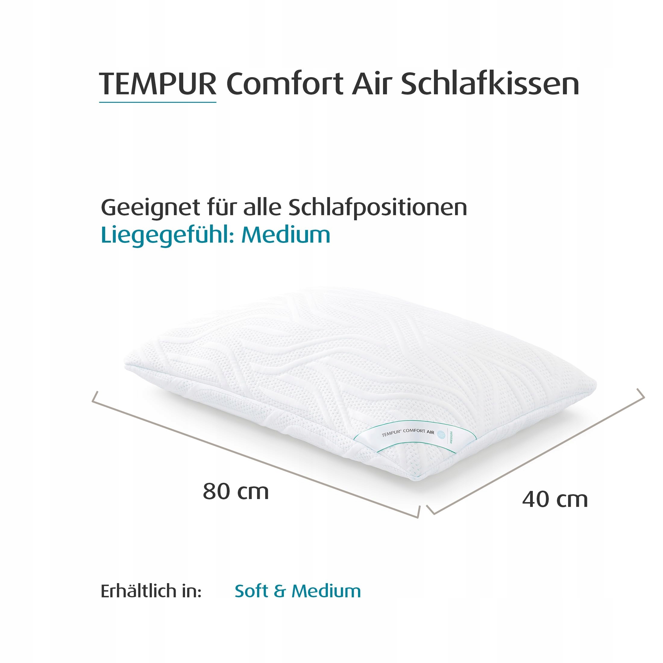 Kissen TEMPUR Comfort Air Medium, oddychające poduszki do spania w każdej pozycji, MADE IN GREEN by OEKO-TEX, średnia twardość, 40 x 80 cm