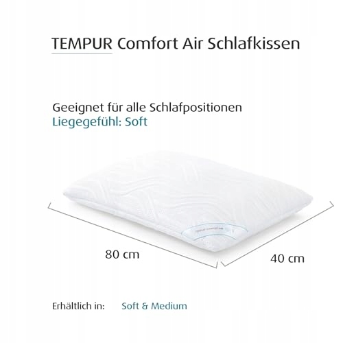 Kissen TEMPUR Comfort Air Soft, oddychające poduszka na głowę dla każdej pozycji do spania, MADE IN GREEN by OEKO-TEX, miękkie uczucie leżenia, 40 x 80 cm