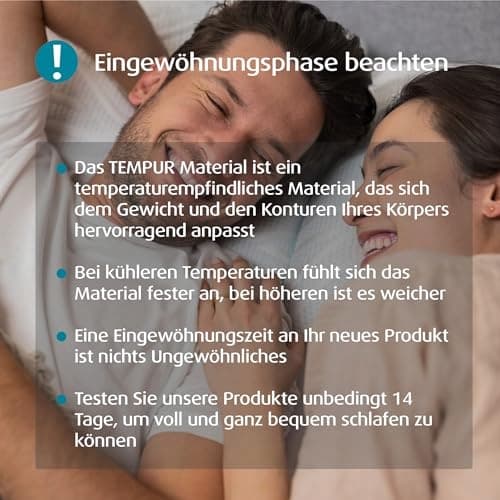Okres adaptacji: Początkowo poduszka może wydawać się bardzo twarda lub sztywna - Materiał TEMPUR reaguje na temperaturę ciała oraz otoczenia i powoli dostosowuje się indywidualnie do Twoich potrzeb, gwarantując wygodne uczucie leżenia