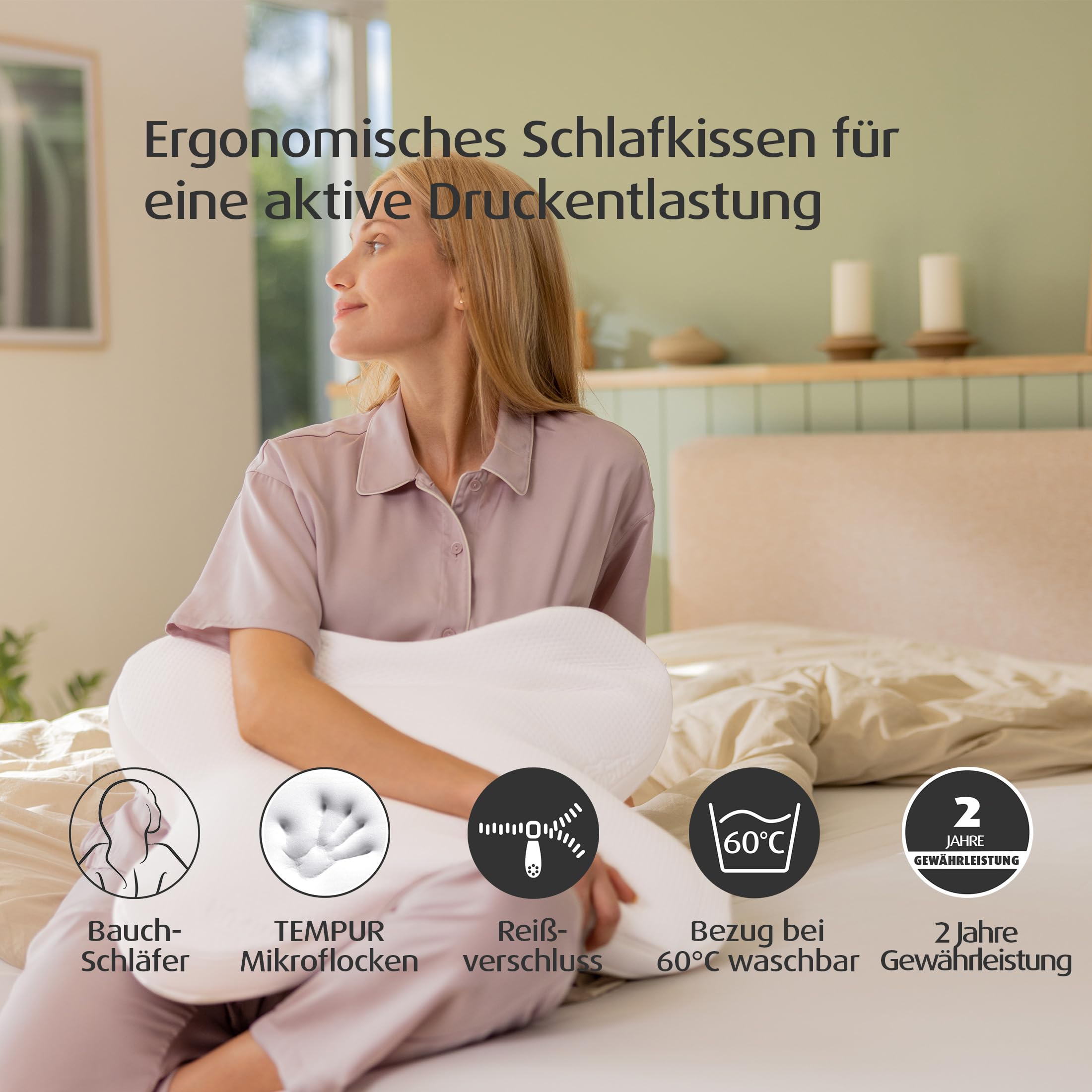 TEMPUR Ombracio poduszka do spania, ergonomiczna poduszka dla śpiących na brzuchu w kształcie motyla, średnio twarde uczucie leżenia, 60 x 50 x 10 cm, biała