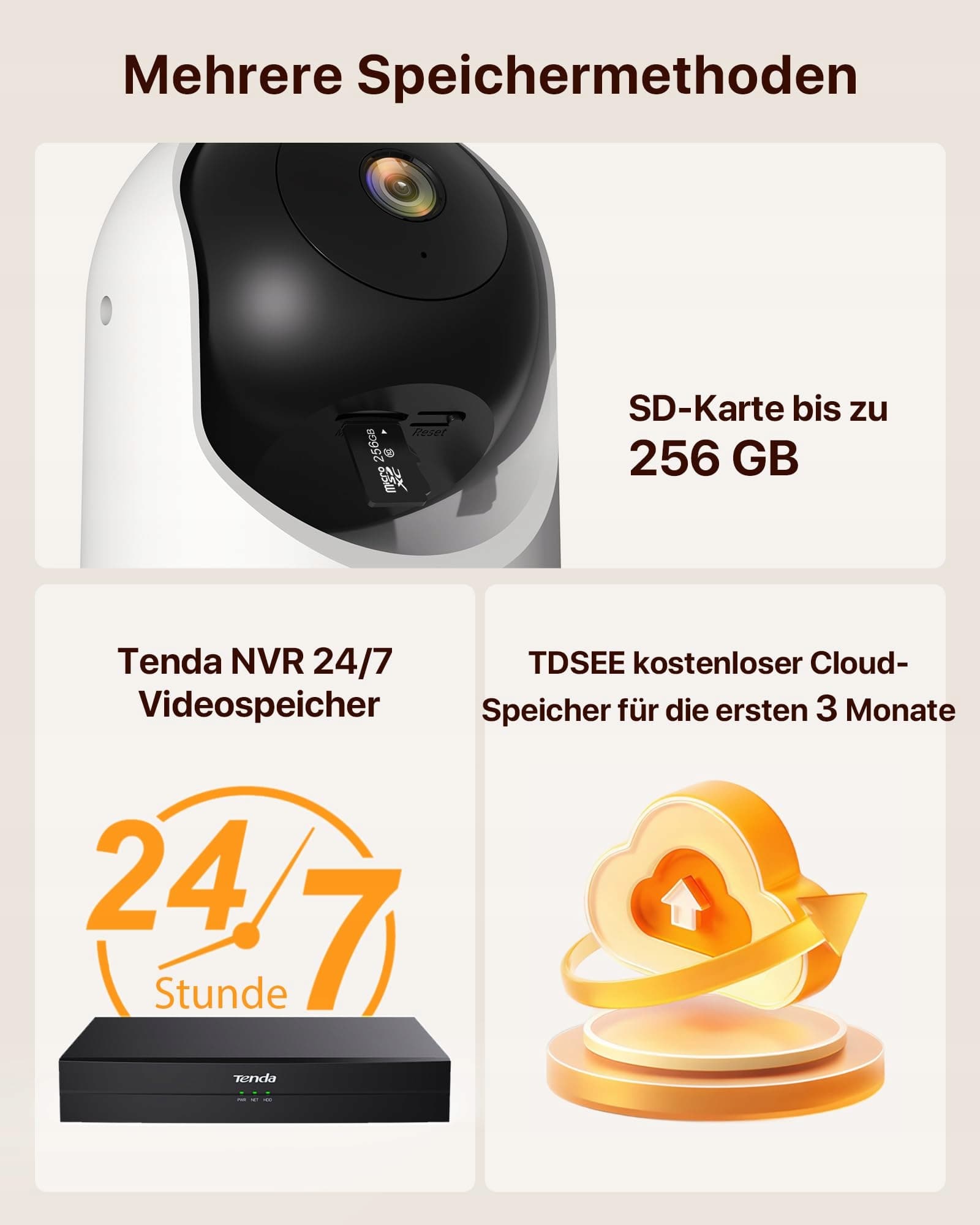 [Brak obowiązku subskrypcji i ochrona prywatności] Subskrypcja w chmurze jest opcjonalna. Nie musisz płacić miesięcznych opłat: po prostu użyj karty microSD (do 256 GB, brak w zestawie) do bezpiecznego nagrywania 24/7, przy pełnej funkcjonalności. Skorzystaj także z trybu prywatności, aby automatycznie wyłączyć obiektyw, gdy jesteś w domu.