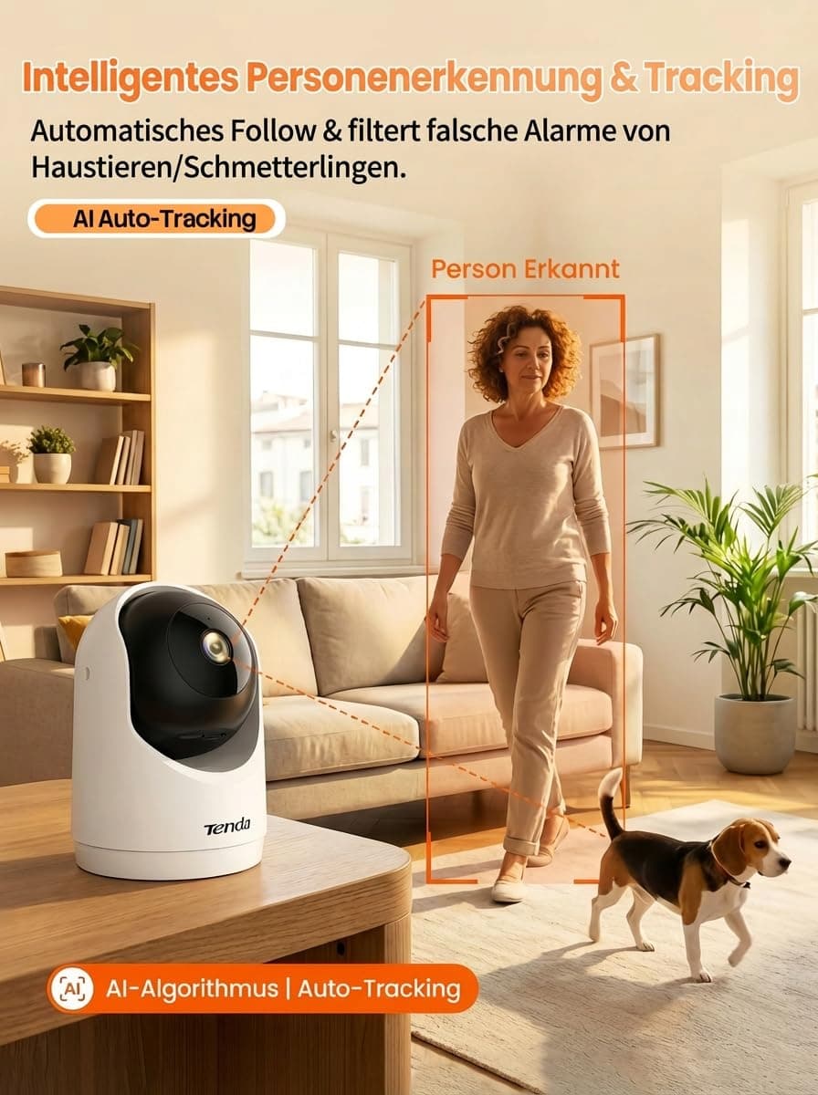 Tenda 3MP WLAN Kamera wewnętrzna do monitoringu, kamera dla zwierząt z dwukierunkowym audio, noktowizja 12M, wykrywanie ruchu i osób, kamera IP 360° do użytku wewnętrznego dla niemowląt i psów, pamięć SD do 256GB, CP3V3.0
