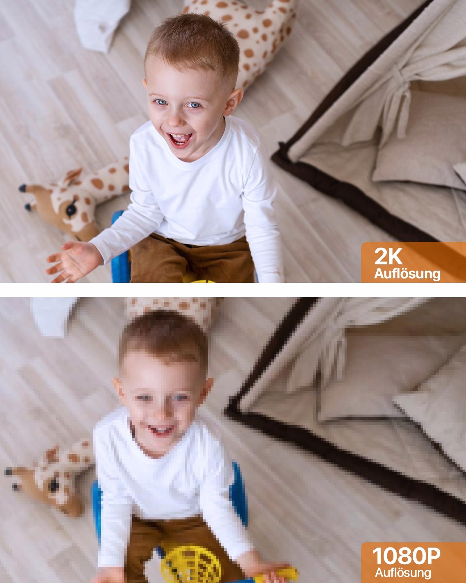 【2K Wyraźny obraz i noktowizja】 Ulepszona 3MP kamera IP do użytku wewnętrznego zapewnia ostry obraz w rozdzielczości 2K z naturalnymi kolorami i obsługuje noktowizję na podczerwień do 12 m, aby rejestrować szczegółowe nagrania także w nocy. Wbudowana antena wzmacniająca sygnał oraz Wi-Fi 6 (tylko 2,4 GHz) zapewniają płynne odtwarzanie wideo i sterowanie (Uwaga: brak kamery z akumulatorem)
