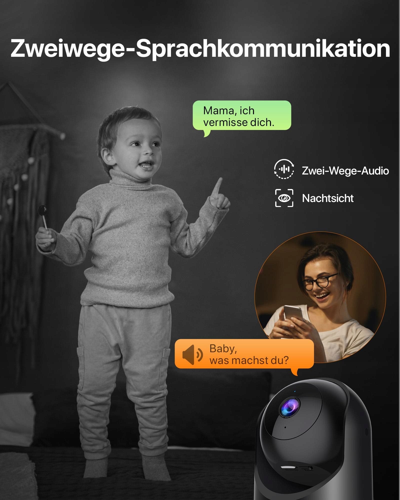 【Dwukierunkowa komunikacja z alarmem】 Dzięki funkcji dwukierunkowego audio w tej kamerze Wi-Fi możesz w każdej chwili rozmawiać z rodziną i zwierzętami. Możesz także użyć aplikacji, aby włączyć alarm dźwiękowy i świetlny, odstraszając intruzów i zapewniając bezpieczeństwo domu.