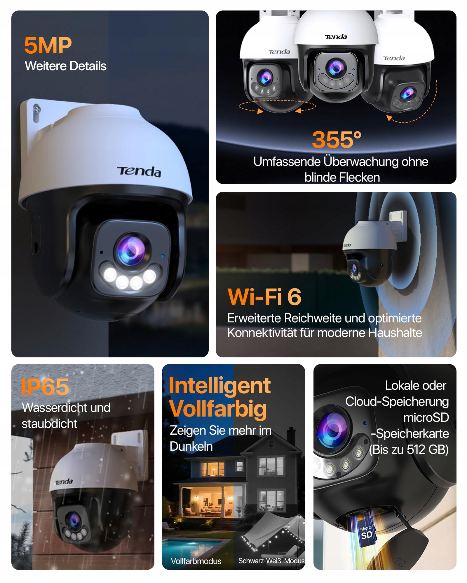 Tenda 5MP 3K Kamera do monitoringu zewnętrznego, wykrywanie AI, automatyczne śledzenie, kamera IP Wi-Fi do monitoringu zewnętrznego lub Ethernet, 30M kolorowa nocna wizja, IP65, kompatybilna z Alexą, CH7 V2.0