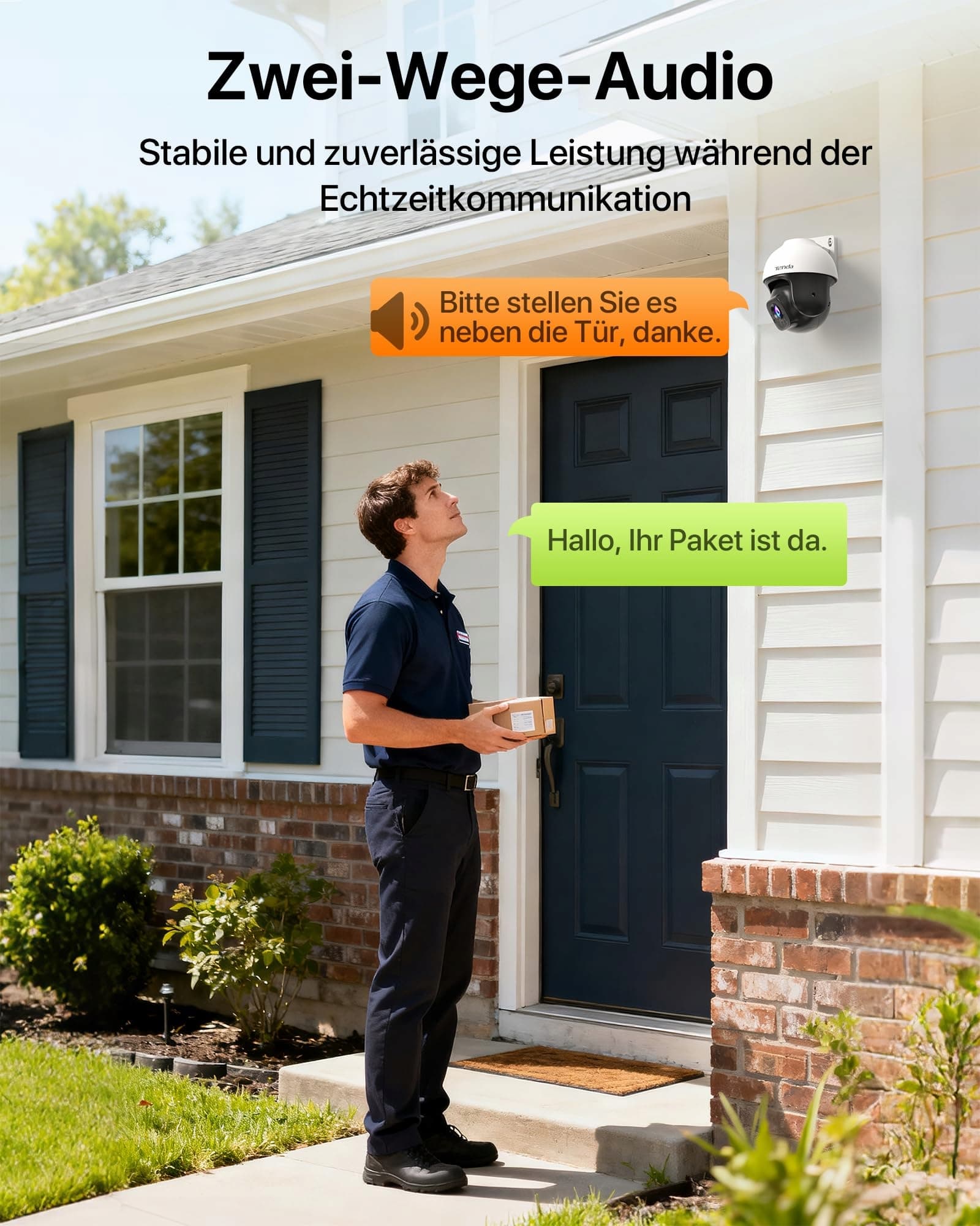 [Kompatybilność z Alexą] Dzięki kompatybilności z Alexą masz wolne ręce podczas korzystania z tej kamery Wi-Fi. Jeśli nie masz pod ręką smartfona, po prostu powiedz do Alexy: ''Otwórz kamerę drzwiową'', aby szybko zobaczyć, kto jest przy drzwiach.