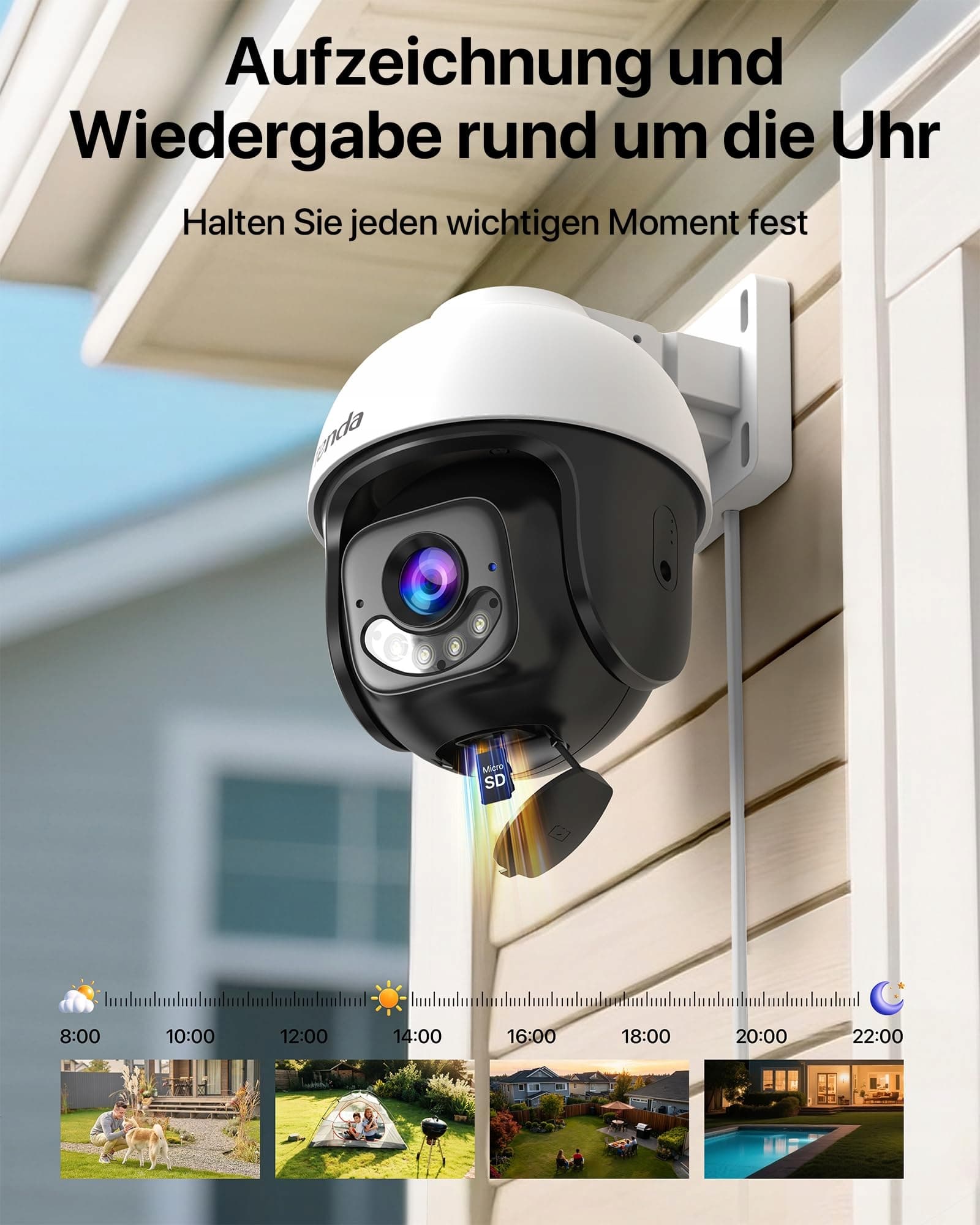 [Inteligentne wykrywanie AI] Ta kamera do monitoringu zewnętrznego obsługuje wykrywanie osób i pojazdów oraz automatyczne śledzenie. W połączeniu z algorytmem NPU minimalizuje fałszywe alarmy i pominięte powiadomienia. Nagrania mogą być odtwarzane w zależności od typu alarmu (osoba/pojazd), a prędkość odtwarzania można dostosować za pomocą karty SD.