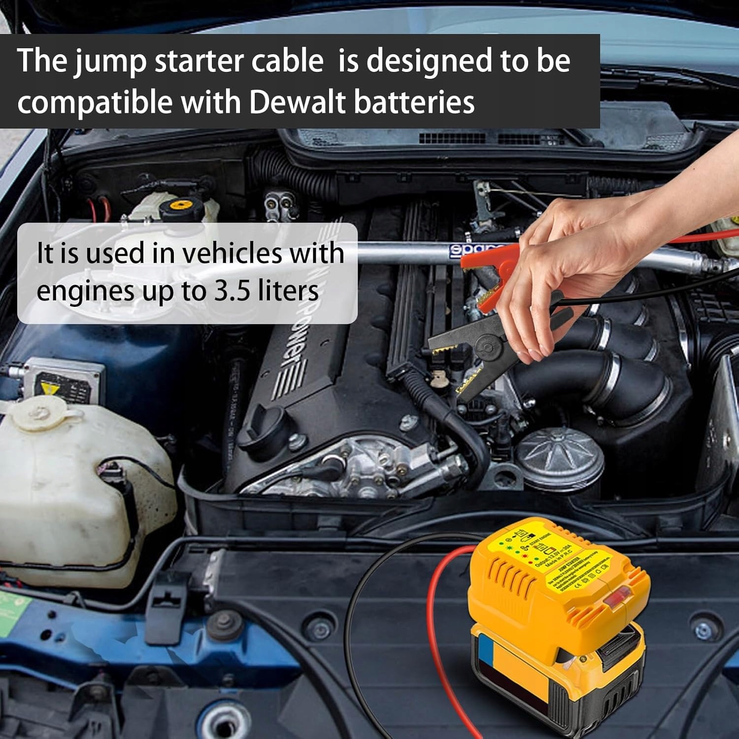 Adapter rozruchowy do akumulatora samochodowego do baterii Dewalt 20V, wzmacniacz akumulatora samochodowego TEPULAS z kablem 11AWG 12V do rozruchu silników do 3,5L benzyna lub 6,5L diesel