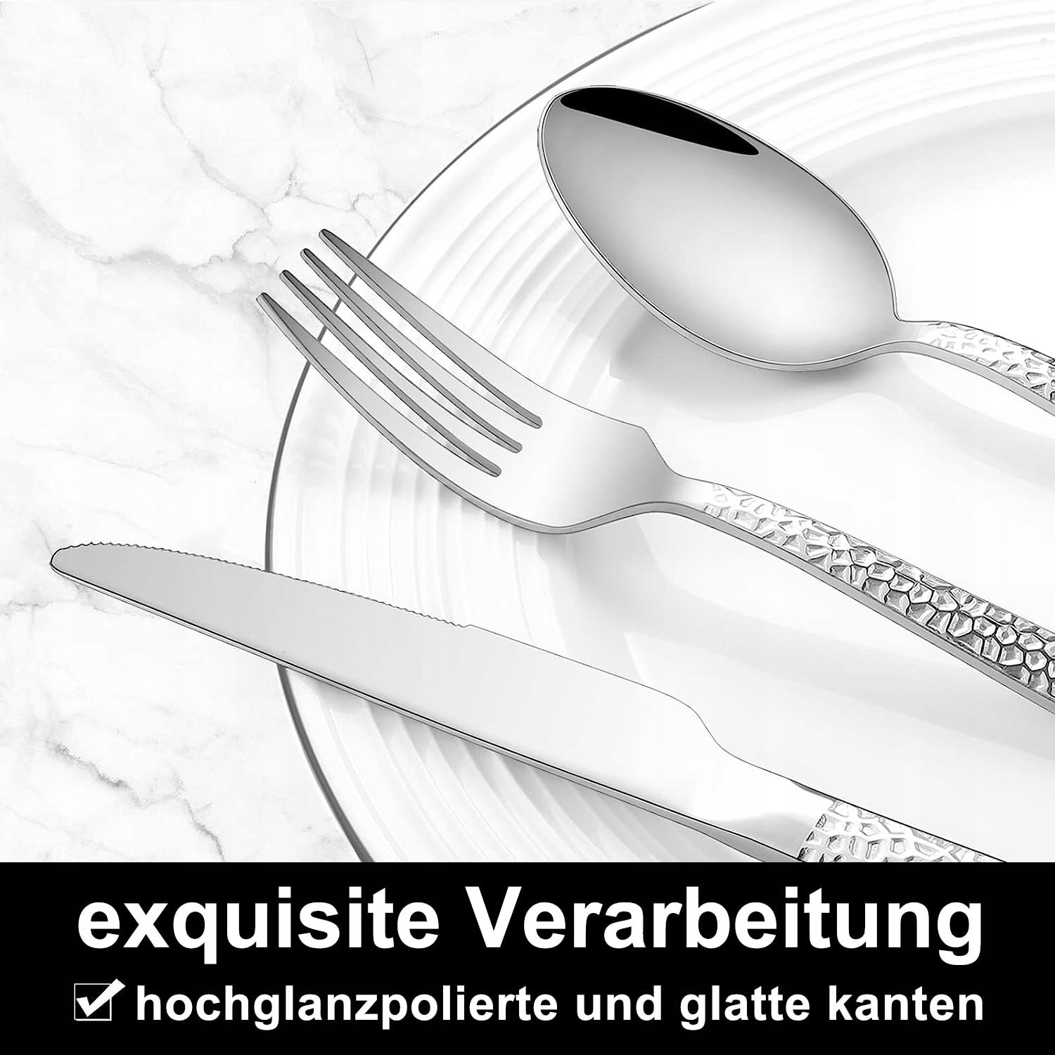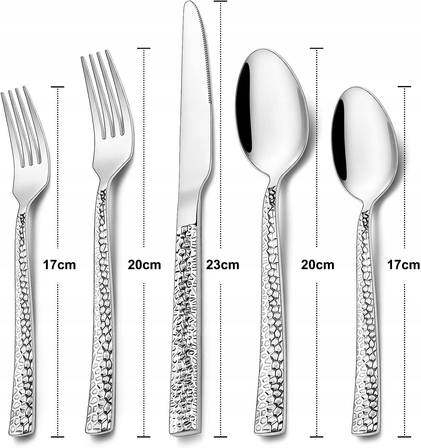 【Nadające się do mycia w zmywarce】Zestaw sztućców jest polerowany na wysoki połysk i wygląda perfekcyjnie. Niezależnie od tego, czy myjesz go ręcznie i osuszasz, czy czyścisz w zmywarce, nasze srebrne sztućce pozostają nieskazitelne, nie rdzewiejąc ani nie tępiąc się. Aby lepiej chronić sztućce, możesz jednak myć je ręcznie i następnie utrzymywać w suchości. Przy odpowiedniej pielęgnacji Twoje sztućce będą wyglądać jak nowe i będą służyć przez wiele lat.