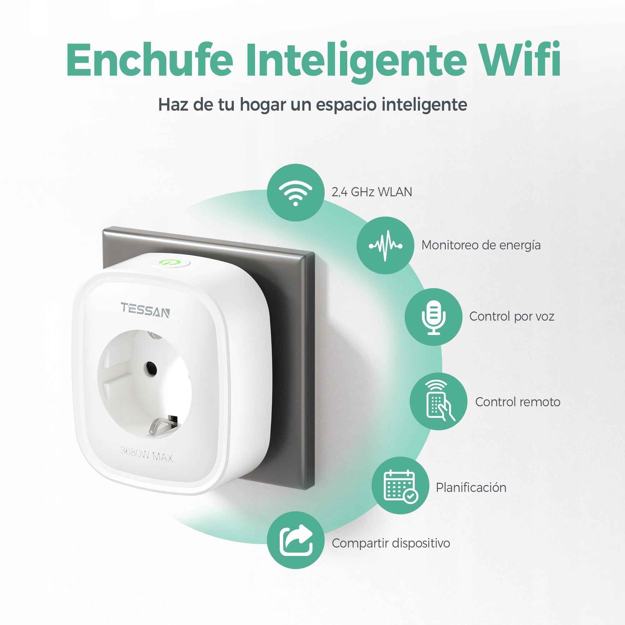 Gniazdko WLAN TESSAN z pomiarem energii, gniazdko Smart Life WiFi, 3680 W gniazdko do wtyczek akcesoria Alexa, sterowanie głosowe, przełącznik pomiaru energii kompatybilny z Google Home Alexa