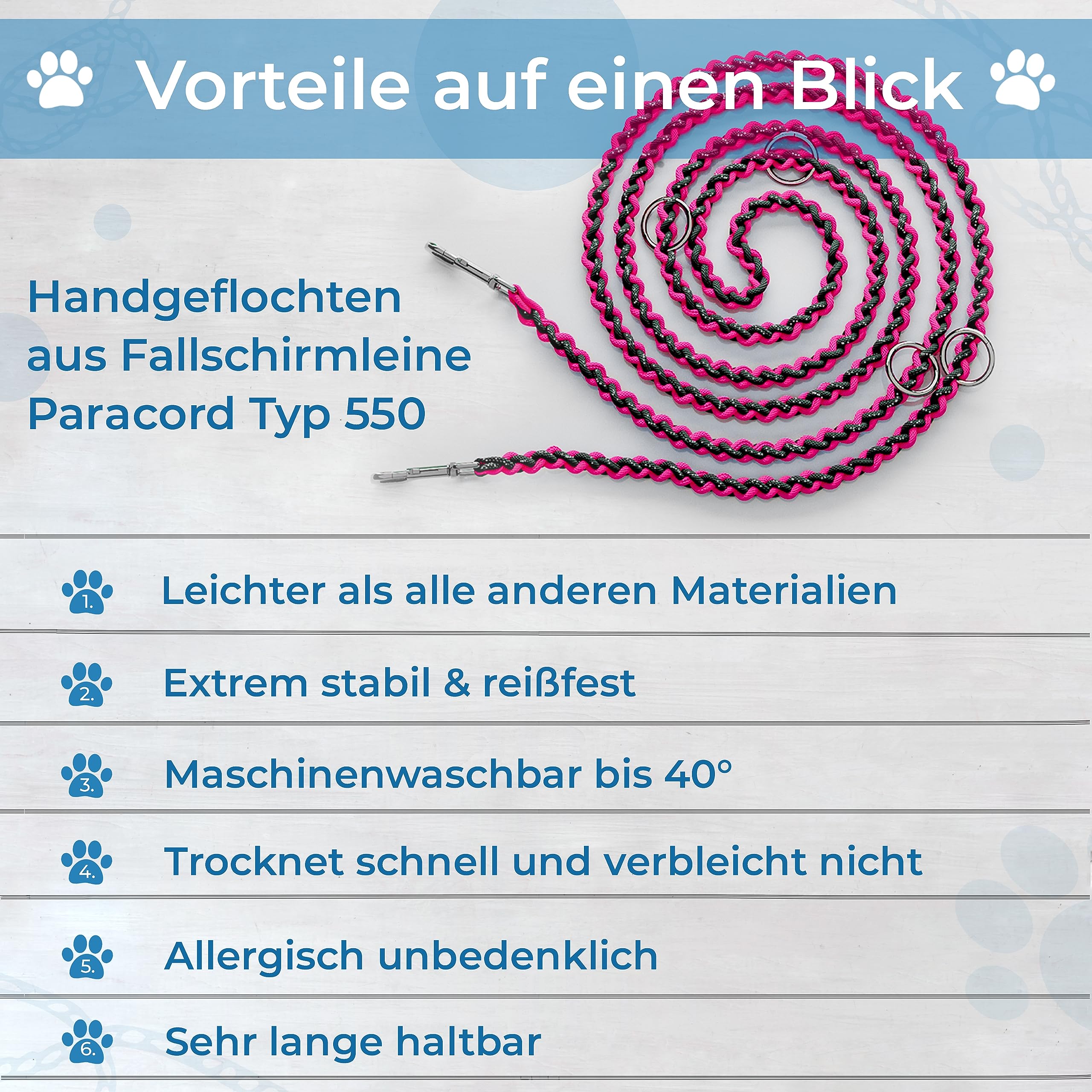 ✅PREMIUM JAKOŚĆ: Smycz spadochronowa jest niezwykle lekka, wytrzymała i odporna na rozdarcia. Ponadto, użyte materiały są odporne na promieniowanie UV i trwałe kolorystycznie nawet po latach.