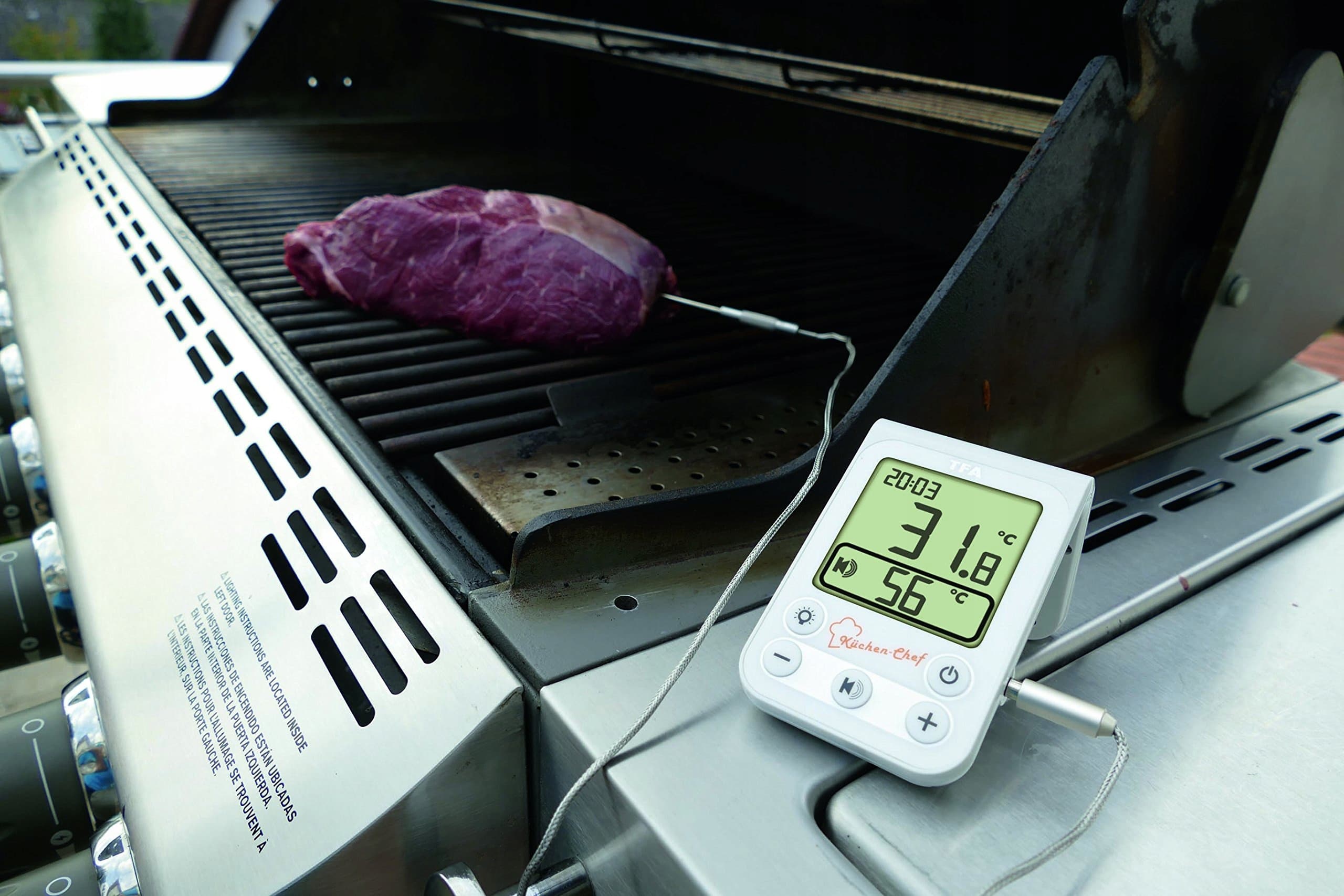 TFA Dostmann Szef Kuchni Cyfrowy Termometr Grillowy z Podświetleniem, Plastik, L85 x B30 x H225 mm (biały)