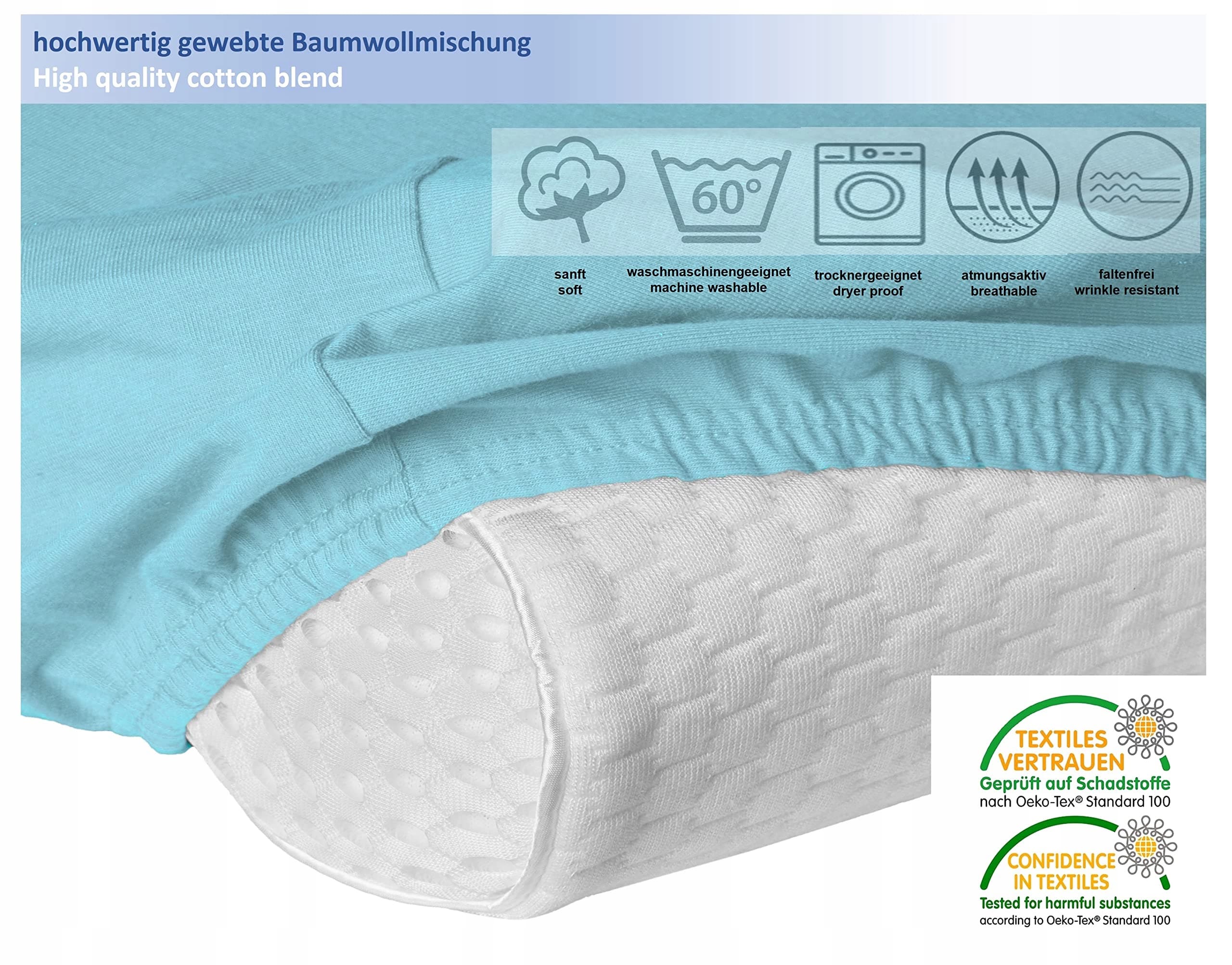 Poszewka jest przyjemnie miękka, nie mechaci się, jest przyjazna dla skóry i oddychająca, przebadana pod kątem substancji szkodliwych zgodnie ze standardem Öko-Tex 100, można ją prać w pralce do 60°C, nadaje się do suszarki i jest odporna na prasowanie do 110°C