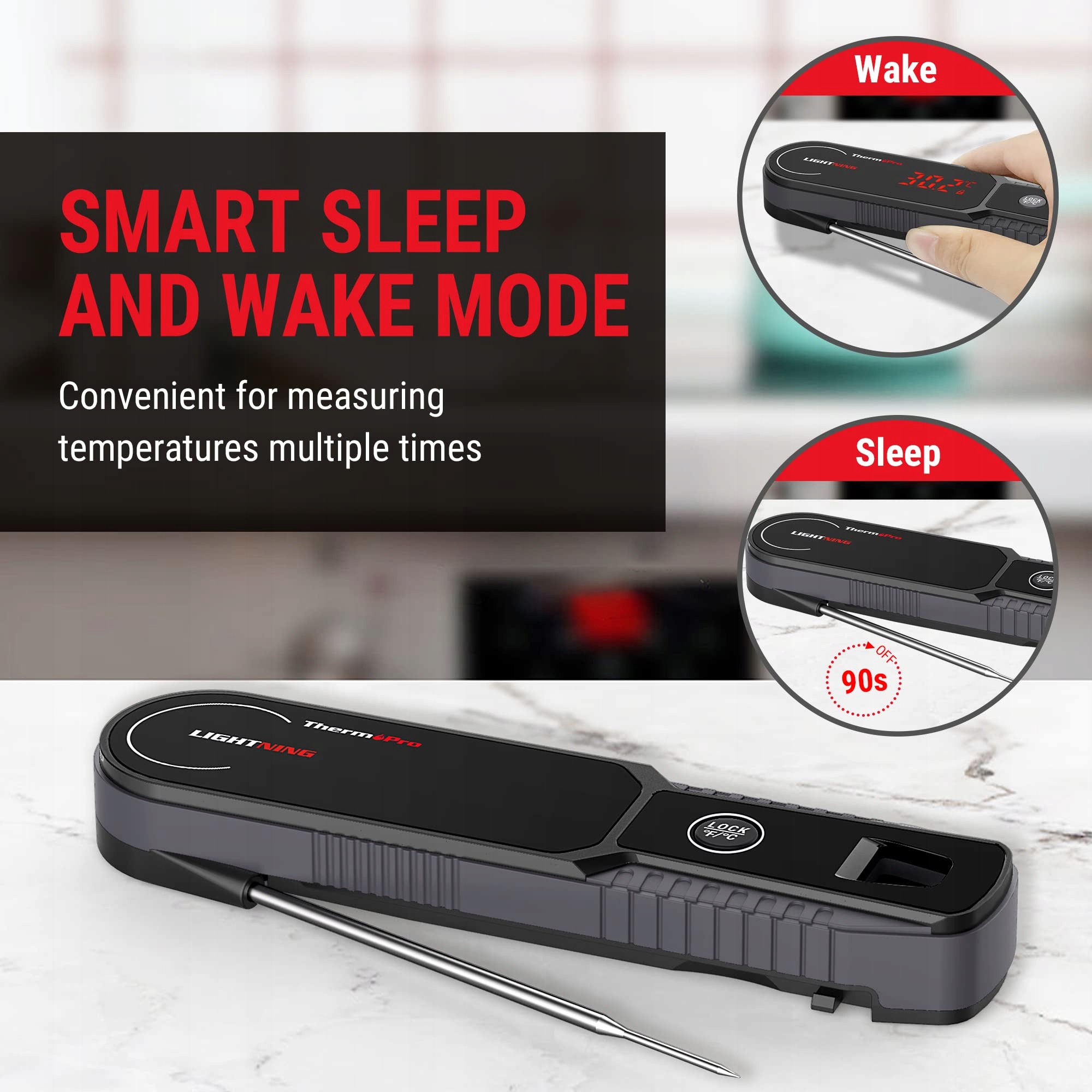 ThermoPro Lightning 1s szybki termometr do mięsa ±0.3℃ dokładny termometr kuchenny IP65 wodoodporny termometr do pieczenia LED miernik temperatury rdzenia termometr kuchenny do mięsa warzyw ciasta żywności dla niemowląt