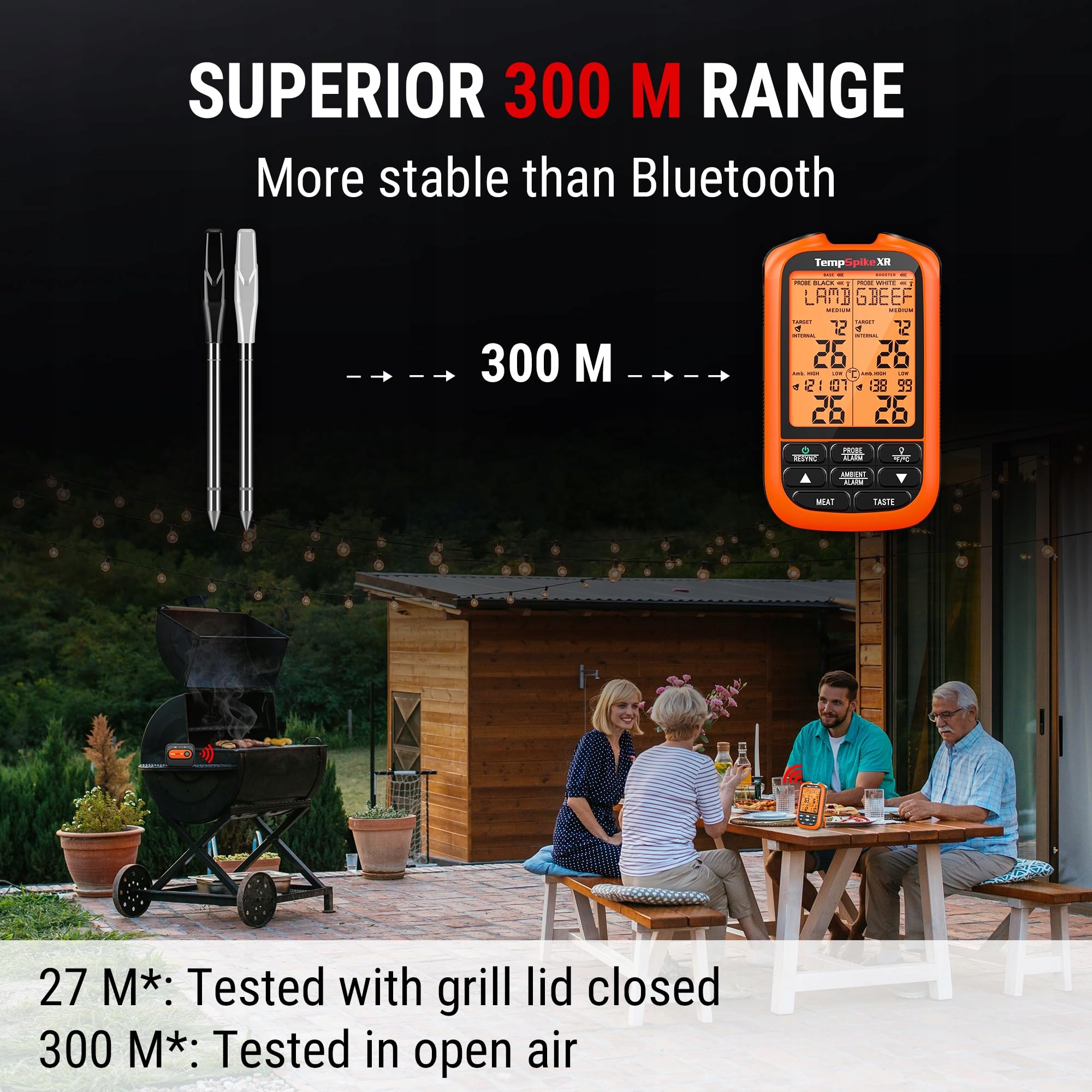 【Stabilniejszy niż Bluetooth】Cyfrowy termometr do mięsa wykorzystuje najnowszą technologię HF, która ma lepszą penetrację niż Bluetooth, do 300 m max, dzięki czemu sygnał i połączenie są stabilniejsze. Rozszerz zasięg za pomocą dodatkowego wzmacniacza zasięgu do 600 m