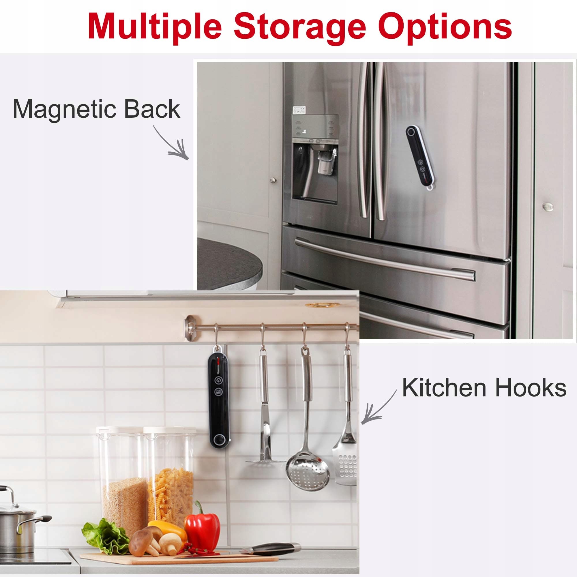 Wyświetlacz LED & funkcja blokady: Unikalny design, wyświetlacz łączy się z obudową, sprawiając, że termometr kuchenny jest harmonijną całością. Wyświetlacz LED z dużymi cyframi zapewnia wyraźne odczyty w trudnych warunkach oświetleniowych lub z różnych kątów. Funkcja blokady oczywiście - chroni przed nieruchomą pozycją nad potrawą oraz przed pryskaniem oleju lub poparzeniem.