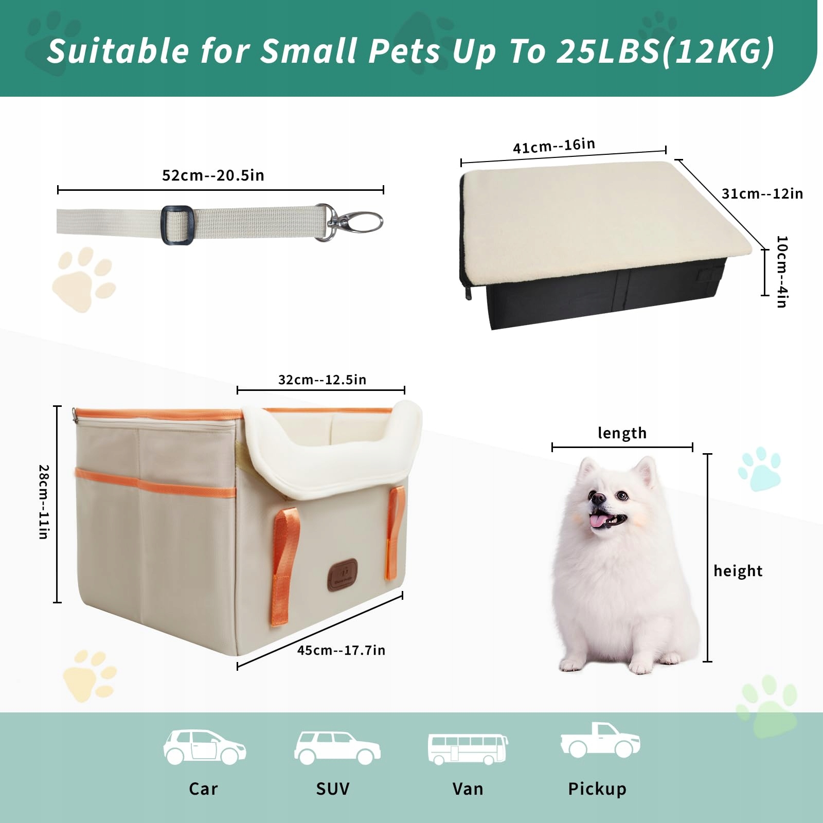 【Siedzenie samochodowe dla małych psów】Koszyk samochodowy ThreeDokke o wymiarach 41 x 32 x 28 cm (dł. x szer. x wys.) jest odpowiedni dla psów i kotów ważących do 8 kg, co czyni go idealnym rozmiarem dla małych zwierząt domowych. Może być używany na przednich lub tylnych siedzeniach limuzyn, SUV-ów i ciężarówek, zapewniając Twojemu zwierzęciu przyjemną podróż samochodem.