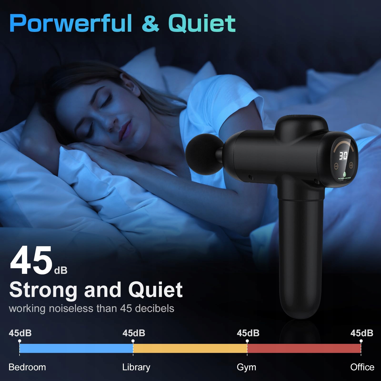 【Super cichy i inteligentny ekran dotykowy LCD】: Ten masażer mięśniowy został specjalnie zaprojektowany z bezszczotkowym silnikiem o wysokim momencie obrotowym, który zapewnia wysoką głębokość i silną penetrację, pracując przy dB tylko między 30 dB a 50 dB. Możesz używać urządzenia do masażu w dowolnym czasie i miejscu. Profesjonalny pistolet do masażu mięśniowego z ekranem dotykowym LCD o wysokiej rozdzielczości. Możesz w każdej chwili wyraźnie zobaczyć poziomy prędkości i pozostałą moc.