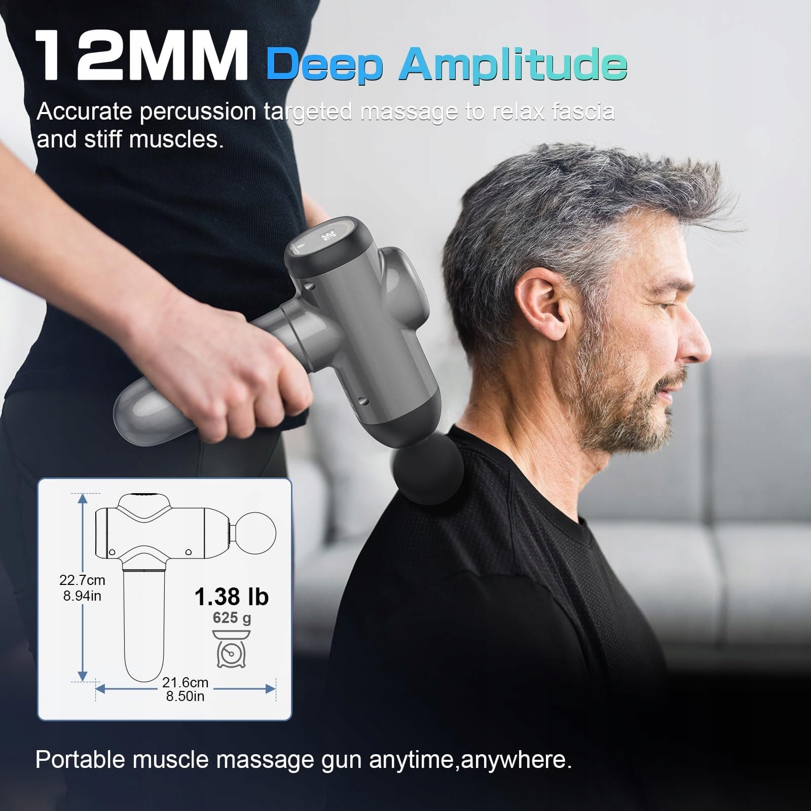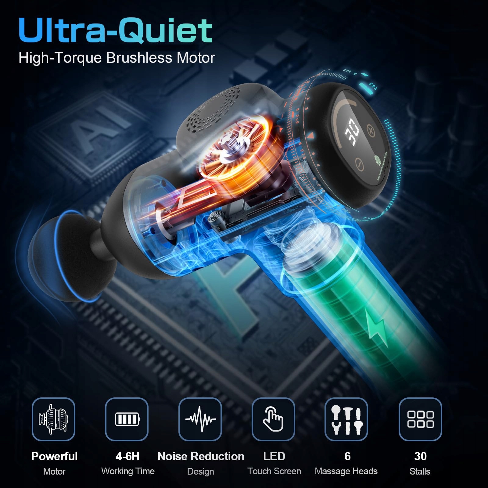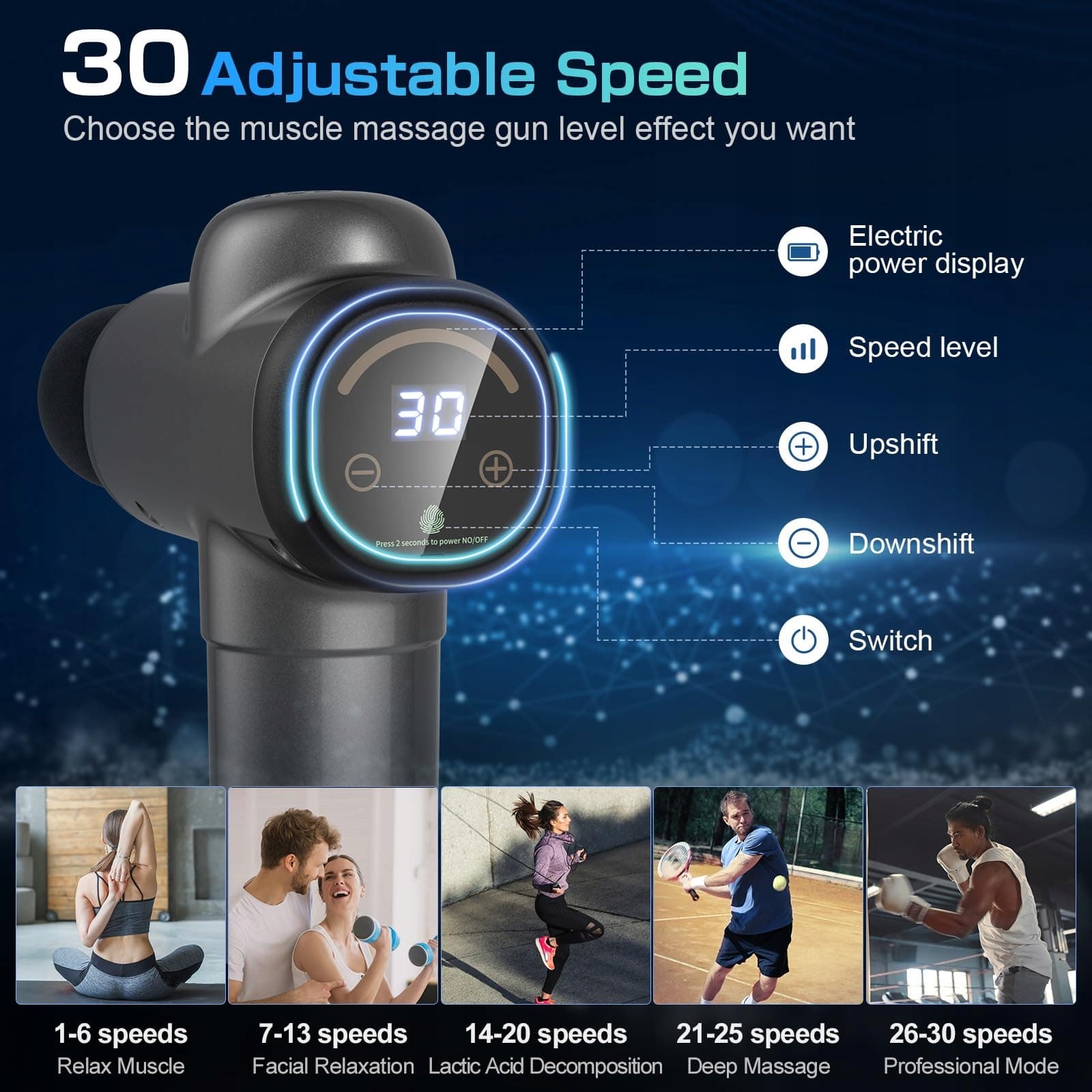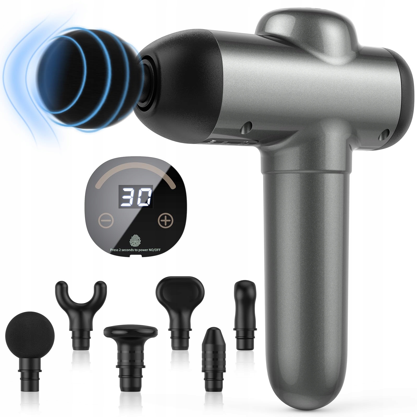 Pistolet do masażu, urządzenie do masażu, elektryczne urządzenia do masażu ręcznego, 30 poziomów prędkości pistoletu do masażu, 6 głowic do masażu w celu łagodzenia bólu mięśni, modelowanie ciała z ekranem dotykowym LCD