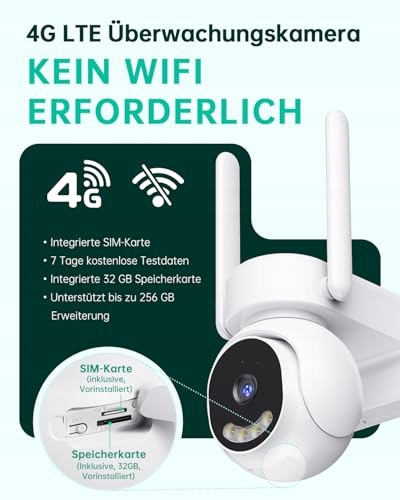 【Podwójna pamięć i zdalne sterowanie】Ta kamera 4G może być zdalnie wyświetlana i sterowana przez aplikację. Filmy można zapisywać na dołączonej karcie pamięci 32 GB (do 256 GB) lub bezpiecznie w chmurze (30-dniowy okres próbny). Możesz udostępniać dostęp w czasie rzeczywistym, aby wspólnie monitorować z rodziną lub przyjaciółmi.