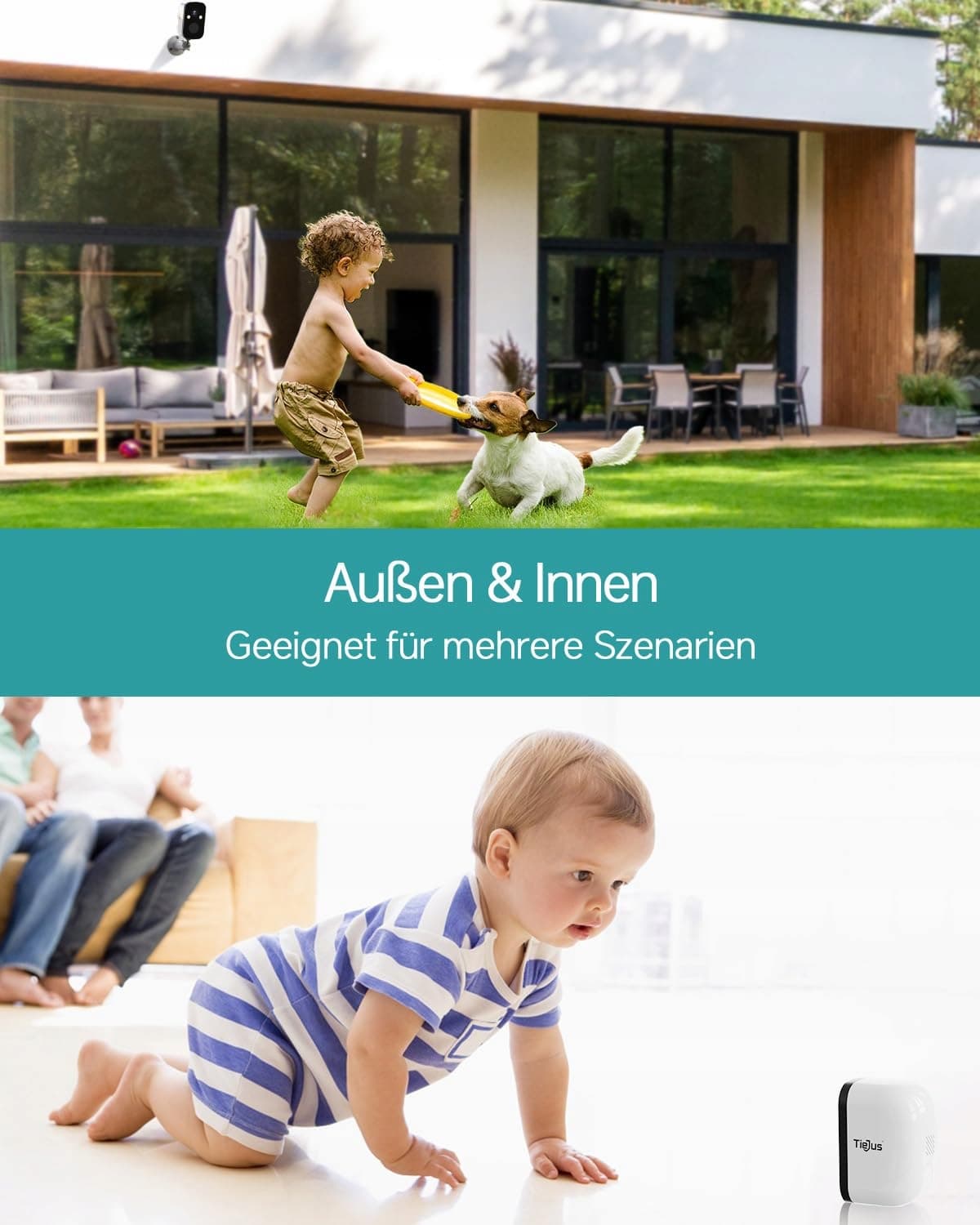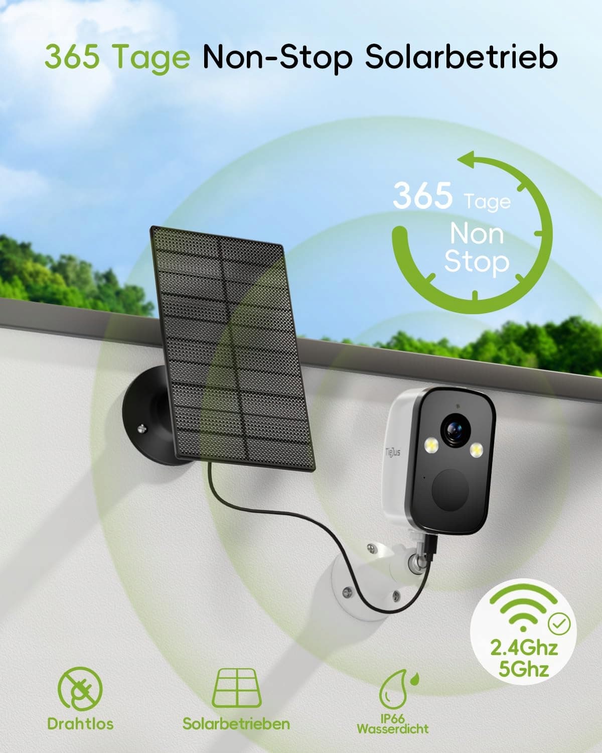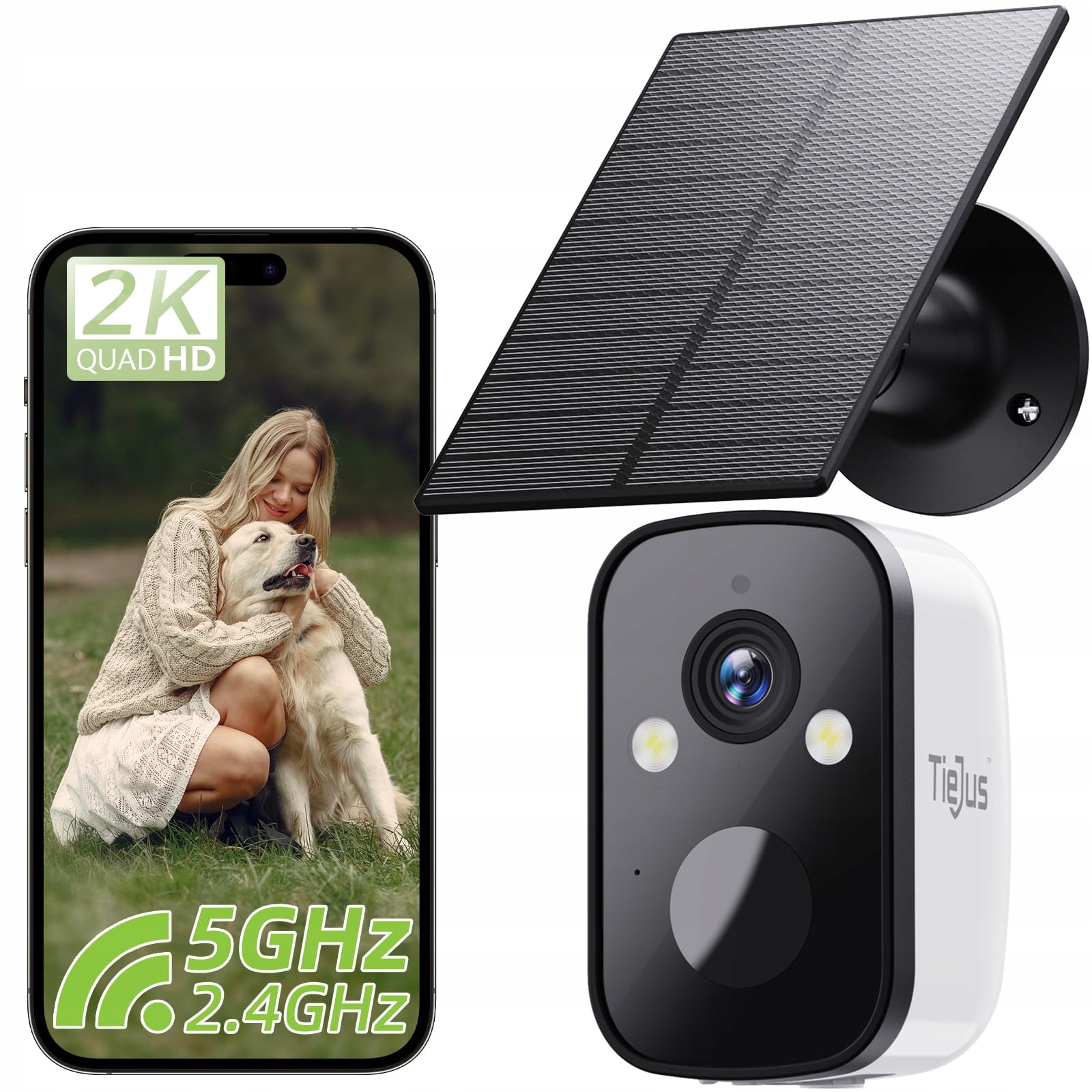 TIEJUS 2K Kamera monitoringu zewnętrznego Akumulator Solarny 5G/2,4GHz WLAN Kamera na zewnątrz Bezprzewodowa, Kamera monitoringu zewnętrznego/Kolorowy tryb nocny/Czujnik ruchu/Przechowywanie w chmurze/IP66