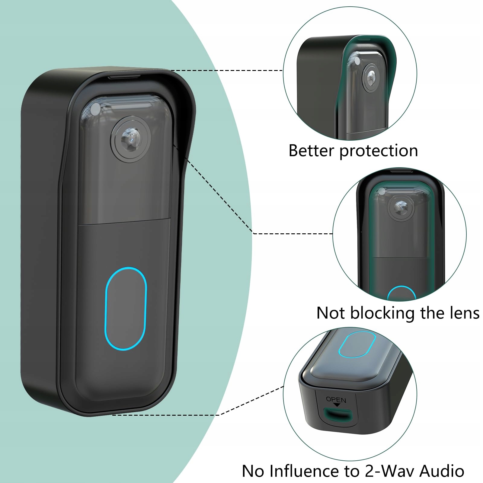 [Precyzyjne wycięcia]: Precyzyjne wycięcie uchwytu do dzwonka Blink zapobiega zakłóceniom funkcji podczerwieni do widzenia nocnego oraz dwukierunkowej komunikacji audio wideodzwonka Blink.