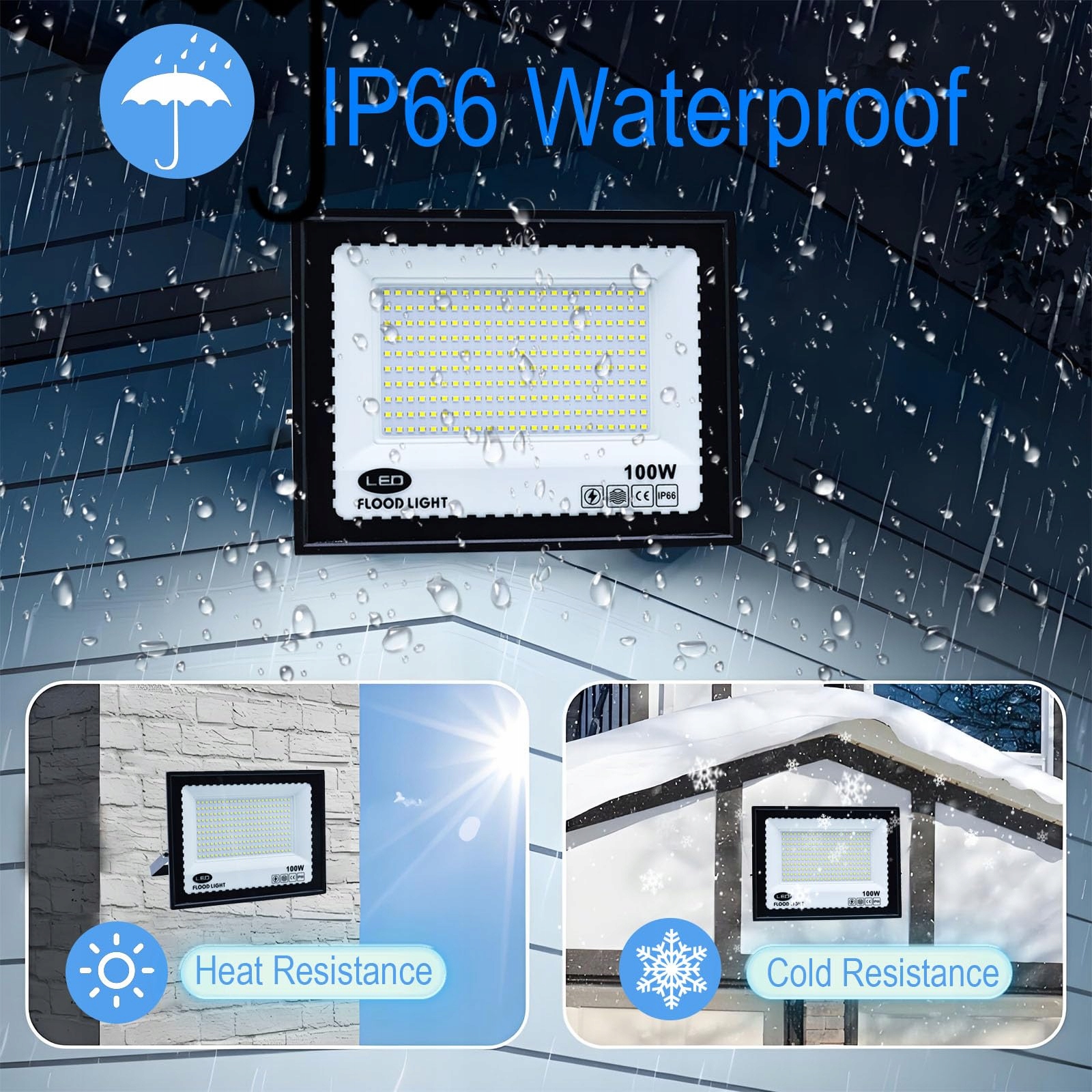 【Super jasne reflektory LED zewnętrzne】 Reflektor LED 100W jest wyposażony w 240 wysokiej jakości diod LED SMD 2835. Emituje jaśniejsze światło niż tradycyjne chipy i osiąga jasność do 10000 lm, co wystarcza do oświetlenia całego ogrodu i podwórka.