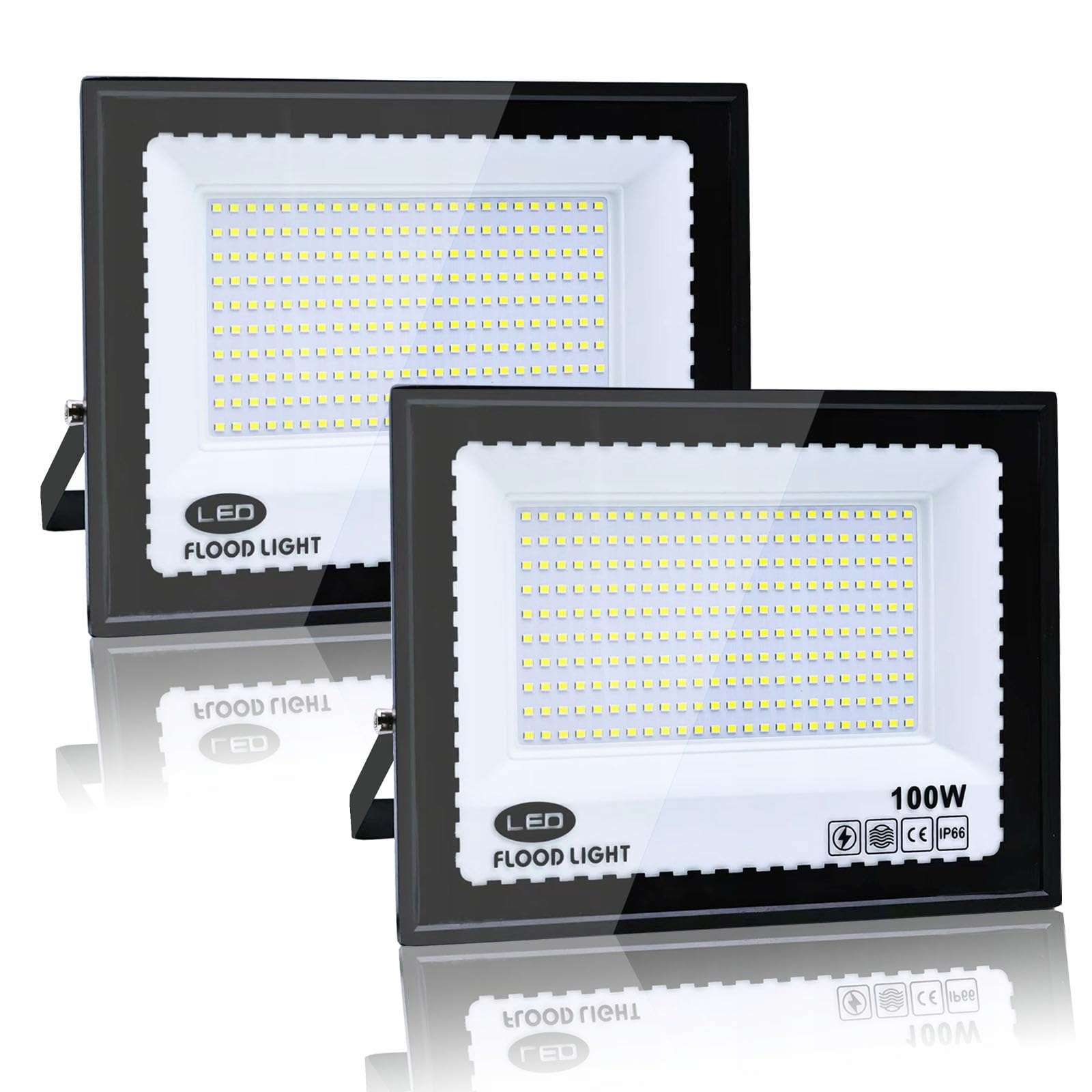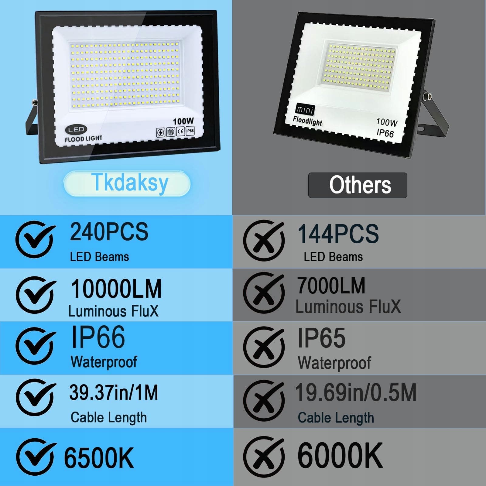 Tkdaksy 2 sztuki reflektorów zewnętrznych 100W, 6500K zimna biel, reflektory zewnętrzne IP66 wodoodporne, 10000LM reflektory LED, do ogrodów, podwórek, garaży, dachów, tarasów, parkingów, placów i nabrzeży