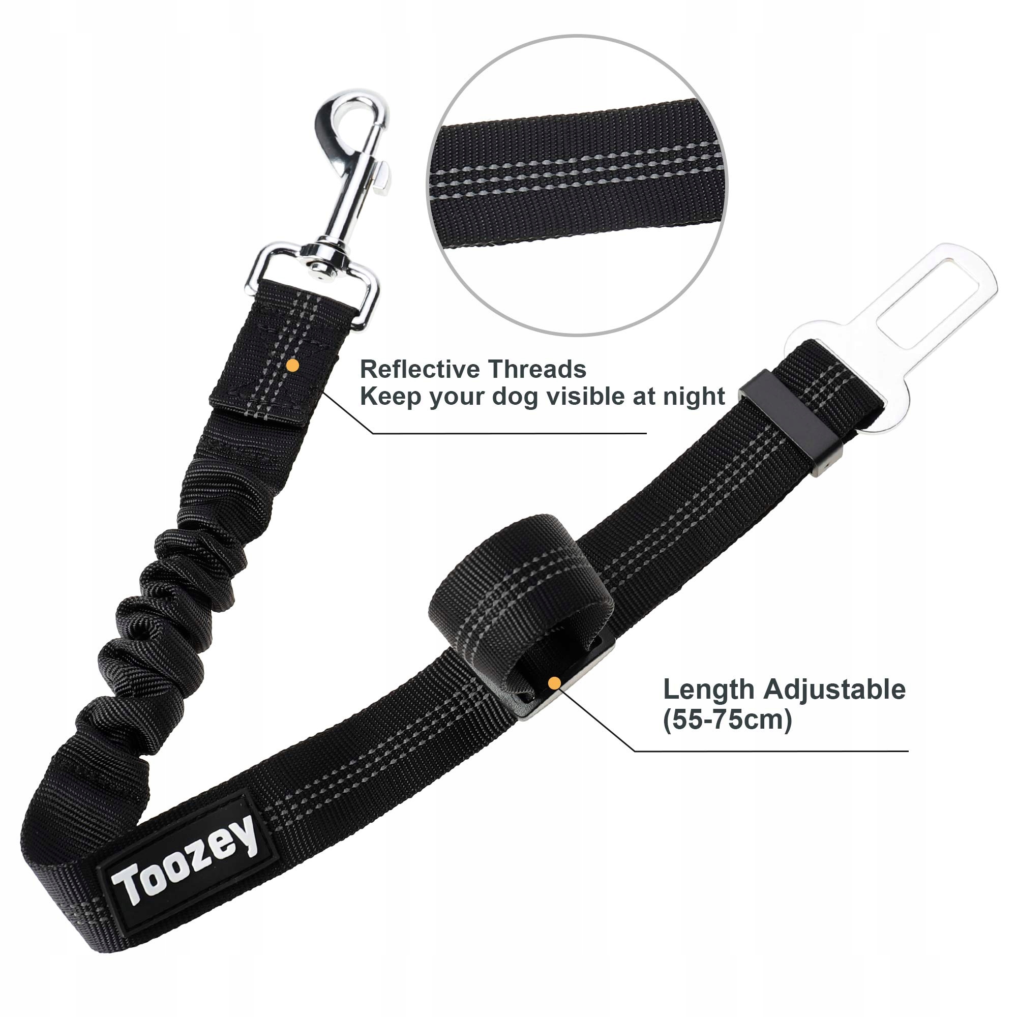 Toozey pas bezpieczeństwa dla psa, pas bezpieczeństwa dla psa z elastycznym amortyzatorem i mocnym karabińczykiem, regulowany pas dla najwyższego bezpieczeństwa dla wszystkich ras psów i kotów