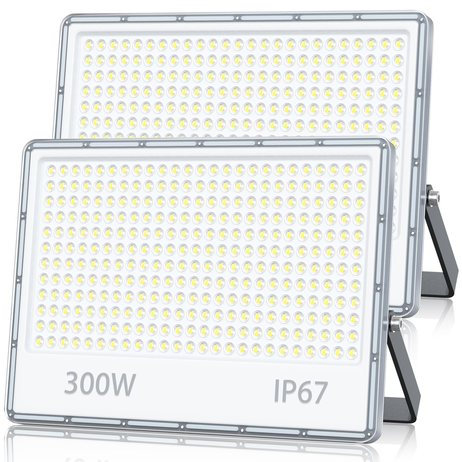 TOPAUBUB LED naświetlacz zewnętrzny 300W, reflektor LED 230V 30000LM 6500K zimna biel IP67 wodoodporny naświetlacz zewnętrzny do ogrodu/na podwórko (2 sztuki)