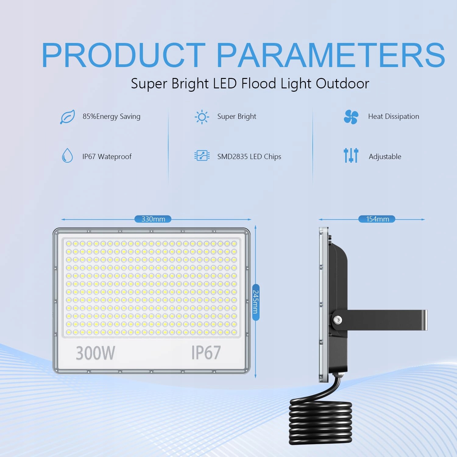 TOPAUBUB LED naświetlacz zewnętrzny: Ten 300 W 30000 LM 6500 K zimnobiały reflektor LED działa przy napięciu 85~265 V. W porównaniu z tradycyjnymi lampami halogenowymi pozwala zaoszczędzić 85% kosztów energii i cieszyć się oświetleniem bez obaw o wysokie rachunki za prąd.