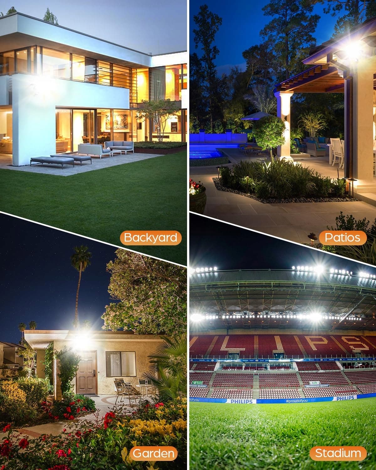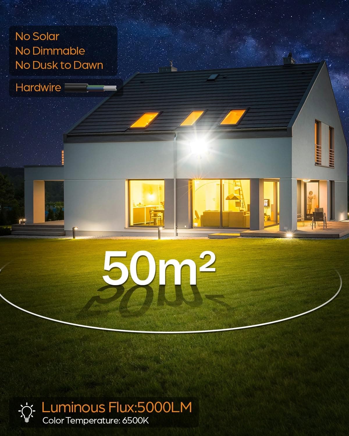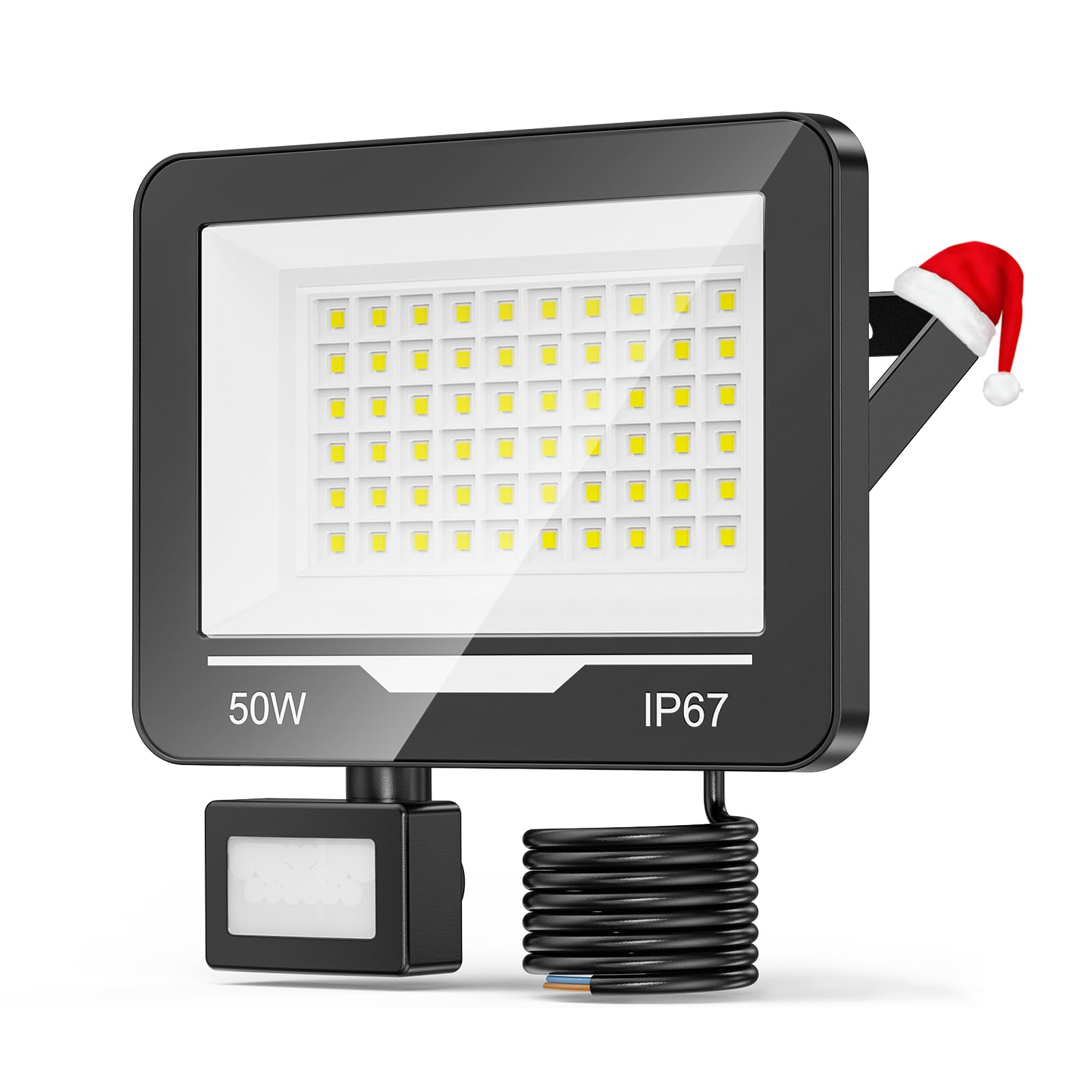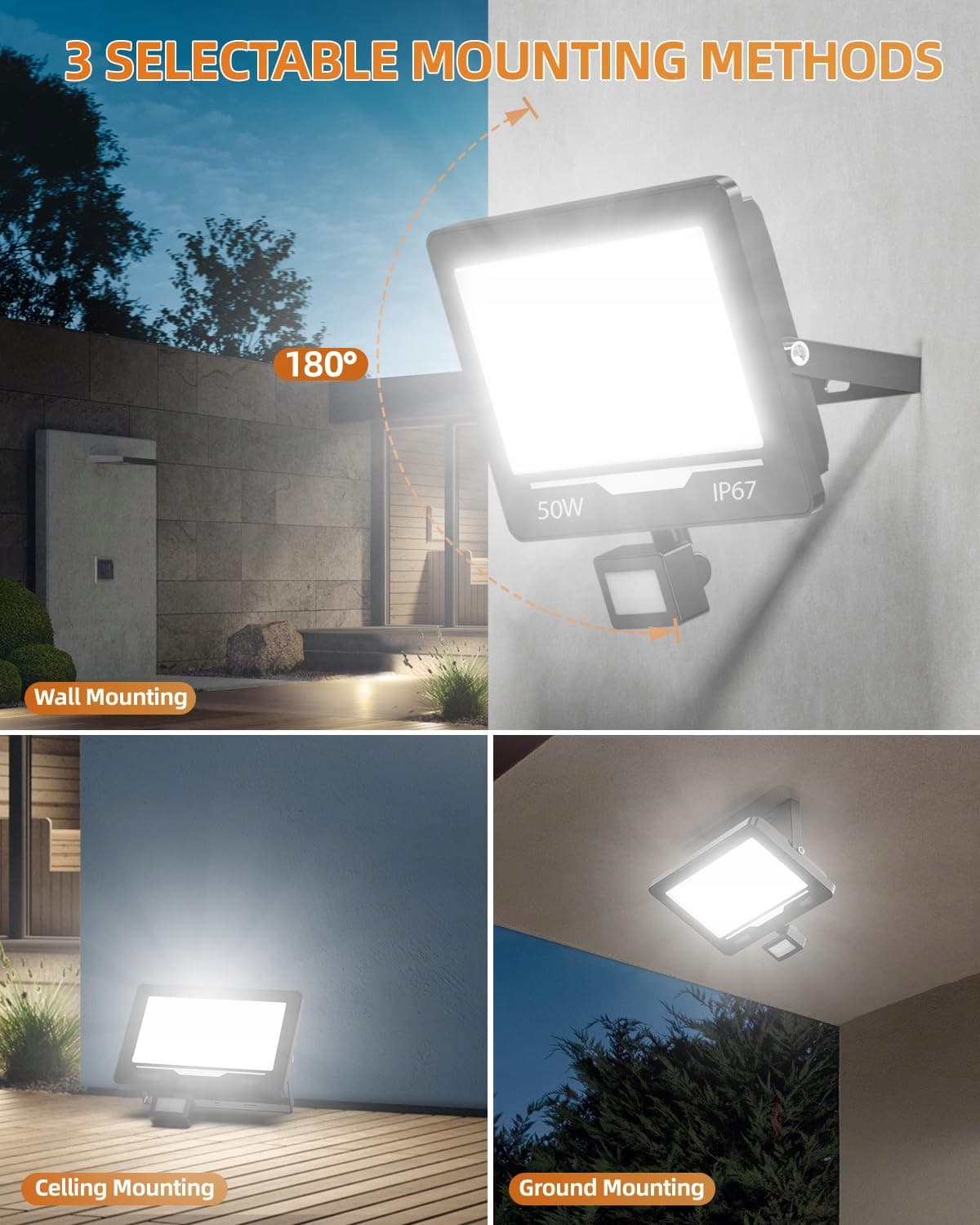 Reflektor LED 50W i 5000LM z czujnikiem ruchu: 50 W reflektor LED z czujnikiem ruchu na zewnątrz dostarcza mocne 5000 lumenów intensywnego, skupionego światła. Ta wysoka wydajność oznacza maksymalną moc świetlną przy mniejszym zużyciu energii w porównaniu z tradycyjnym oświetleniem. Reflektory oświetlają skutecznie duże podjazdy, podwórka, warsztaty lub obszary bezpieczeństwa.