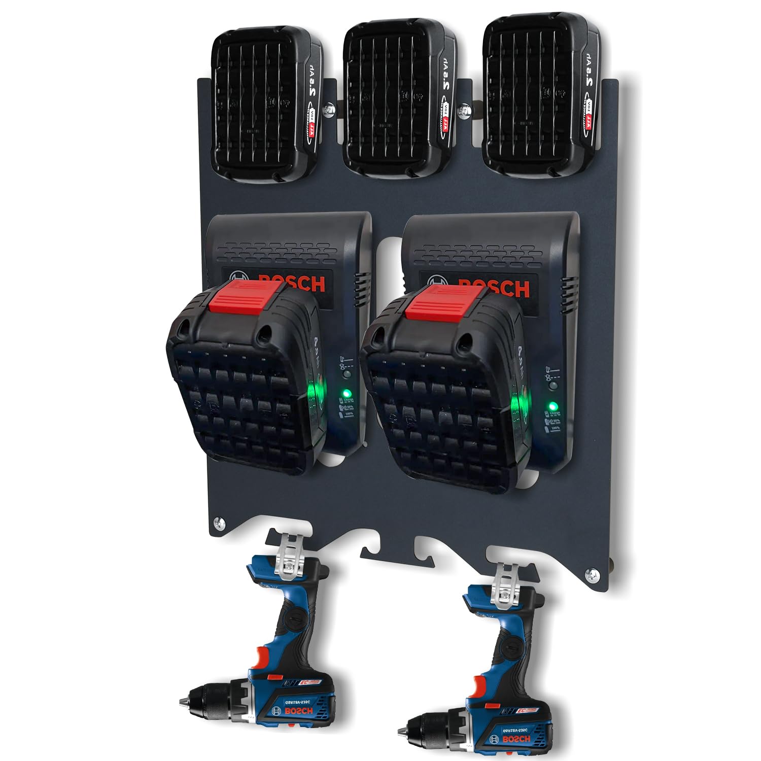 【PORZĄDEK I SYSTEM】 Dzięki uchwytowi ściennemu TOPOWN możesz zorganizować swoje miejsce pracy i utrzymać warsztat w porządku. Po zorganizowaniu wszystko jest w jednym miejscu, łatwo dostępne i zawsze w pełni naładowane, gdy ich używasz. Oszczędzaj miejsce dla lepszego wykorzystania. Zwiększ produktywność i popraw środowisko pracy, stosując teraz uchwyt ścienny TOPOWN.