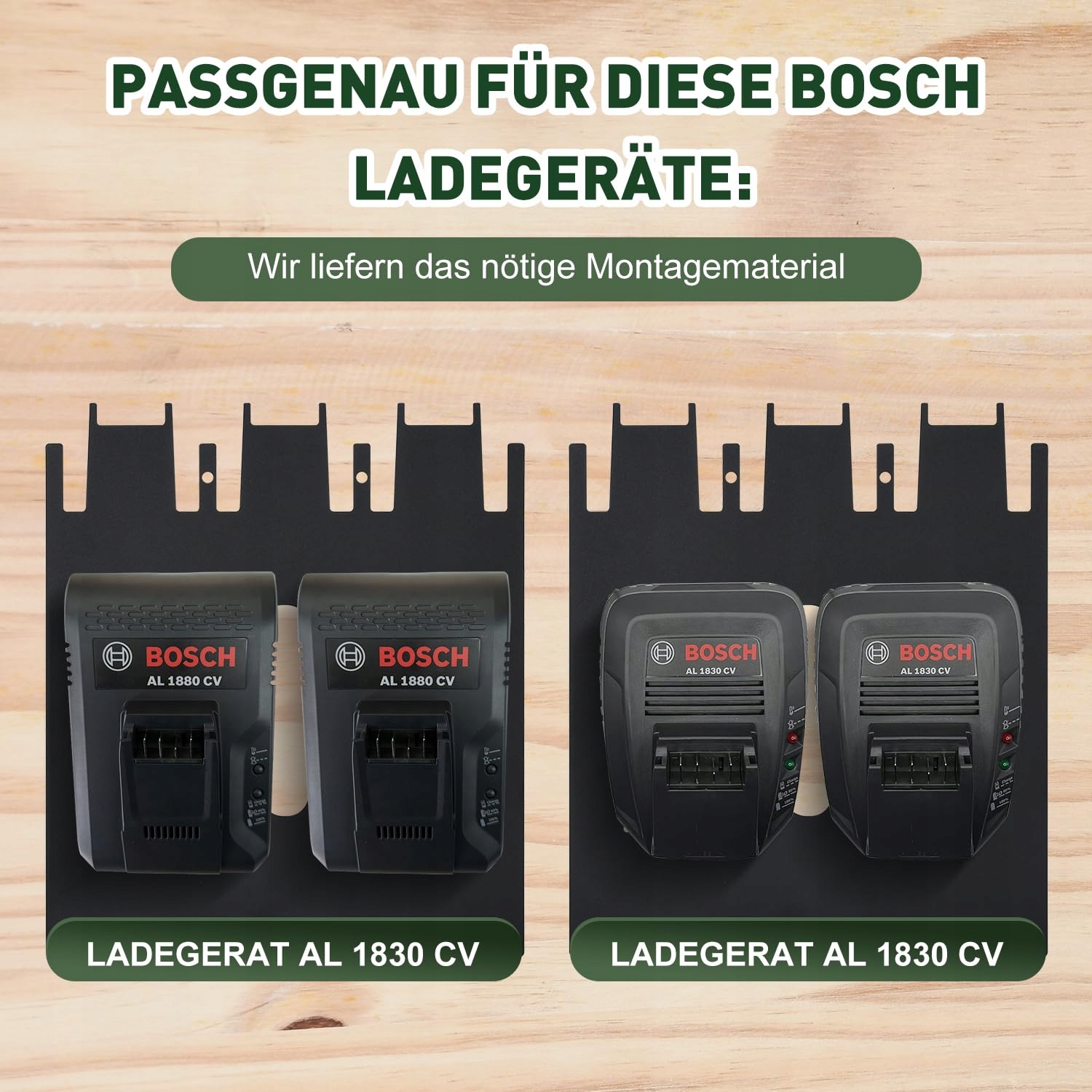 【IDEALNY DLA BOSCH HOME & GARDEN - ŁADOWARKI】 Na uchwyt akumulatora TOPOWN BOSCH pasują wszystkie popularne ładowarki Bosch (Home & Garden): AL1880 CV i AL1830 CV. Dzięki dobrze zaprojektowanym i wstępnie wywierconym otworom łatwo jest przymocować ładowarki BOSCH do uchwytu. Bezpośrednie połączenie śrubowe z ładowarką zapewnia maksymalną stabilność.