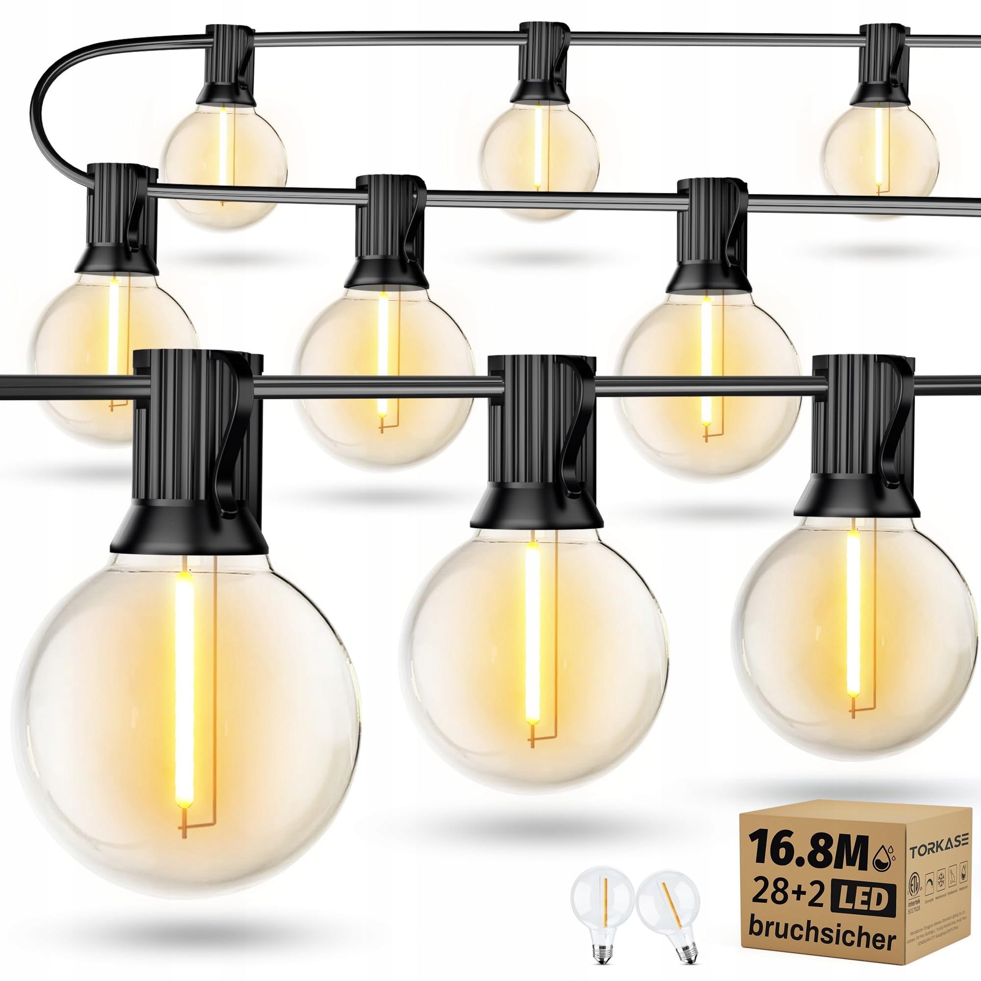 Torkase LED Lichterkette Außen Strom 16.8m - Zewnętrzne Lichterketten 55FT z odpornością na warunki atmosferyczne 28+2 G40 żarówki ciepłobiałe Lichterkette na balkon, ogród, pawilon, taras, namiot, wesele, imprezę